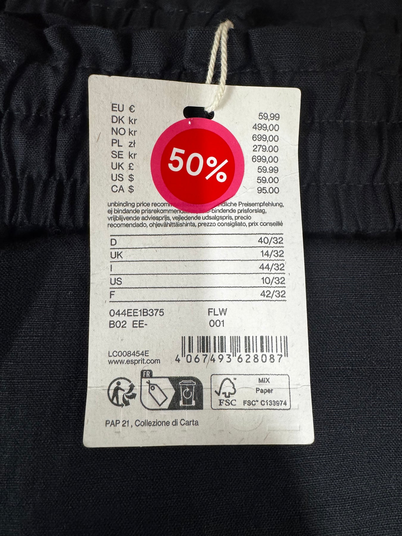 Dessa vida byxor från välkända märket Esprit kombinerar komfort med en elegant touch. Tillverkade i en mjuk och behaglig kvalitet, är de perfekta för såväl vardagsbruk som för mer uppklädda tillfällen. Den flexibla midjan med dragsko bidrar till en anpassningsbar passform. Byxorna är begagnade men i mycket gott skick, vilket gör dem till ett utmärkt köp för den mode- och miljömedvetna konsumenten.