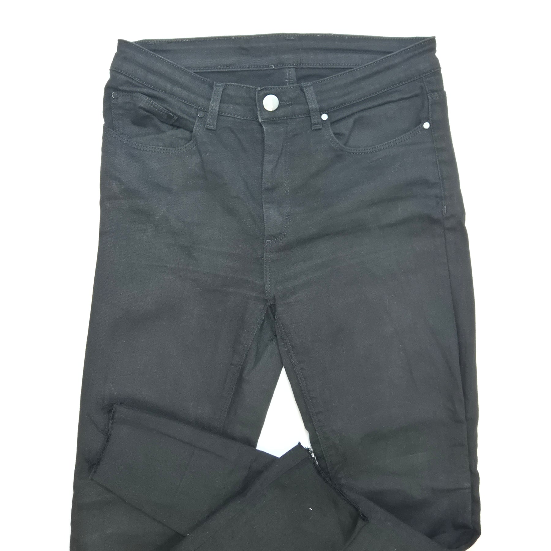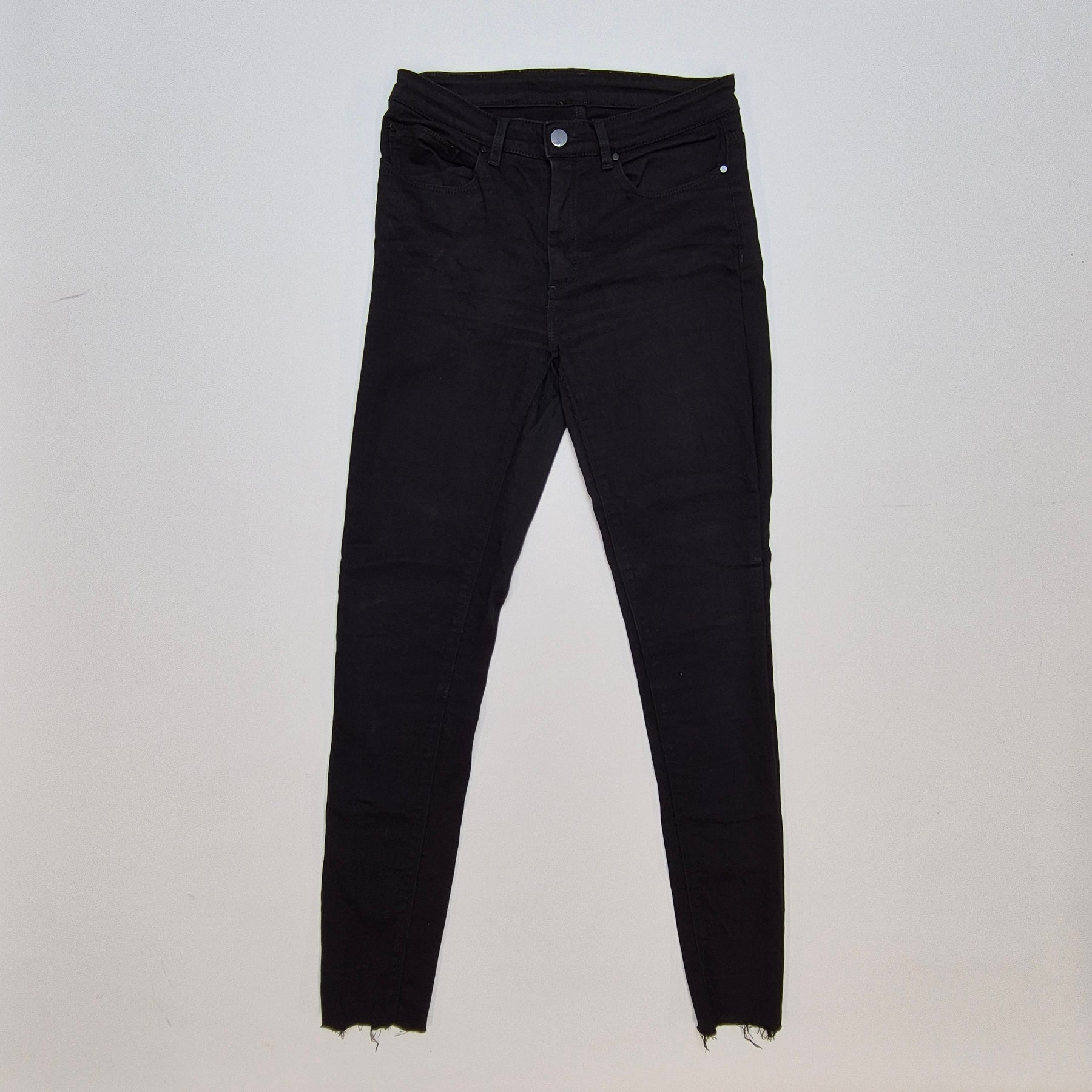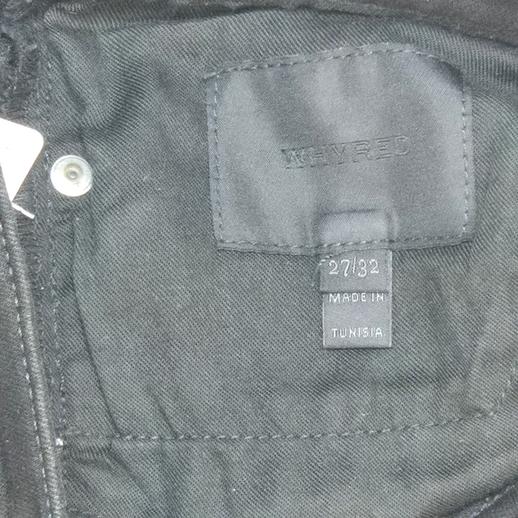 Dessa eleganta svarta jeans från WeSC bjuder på en tidlös design som passar perfekt till såväl vardag som till festligare tillfällen. Byxorna är tillverkade med en robust kvalitet och har slitna detaljer vid bensluten för en modern och avslappnad look. Skicket är begagnat men de är mycket välvårdade och ger ett fräscht intryck.Produktspecifikationer