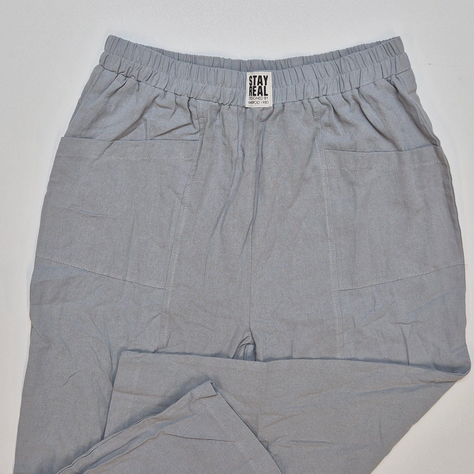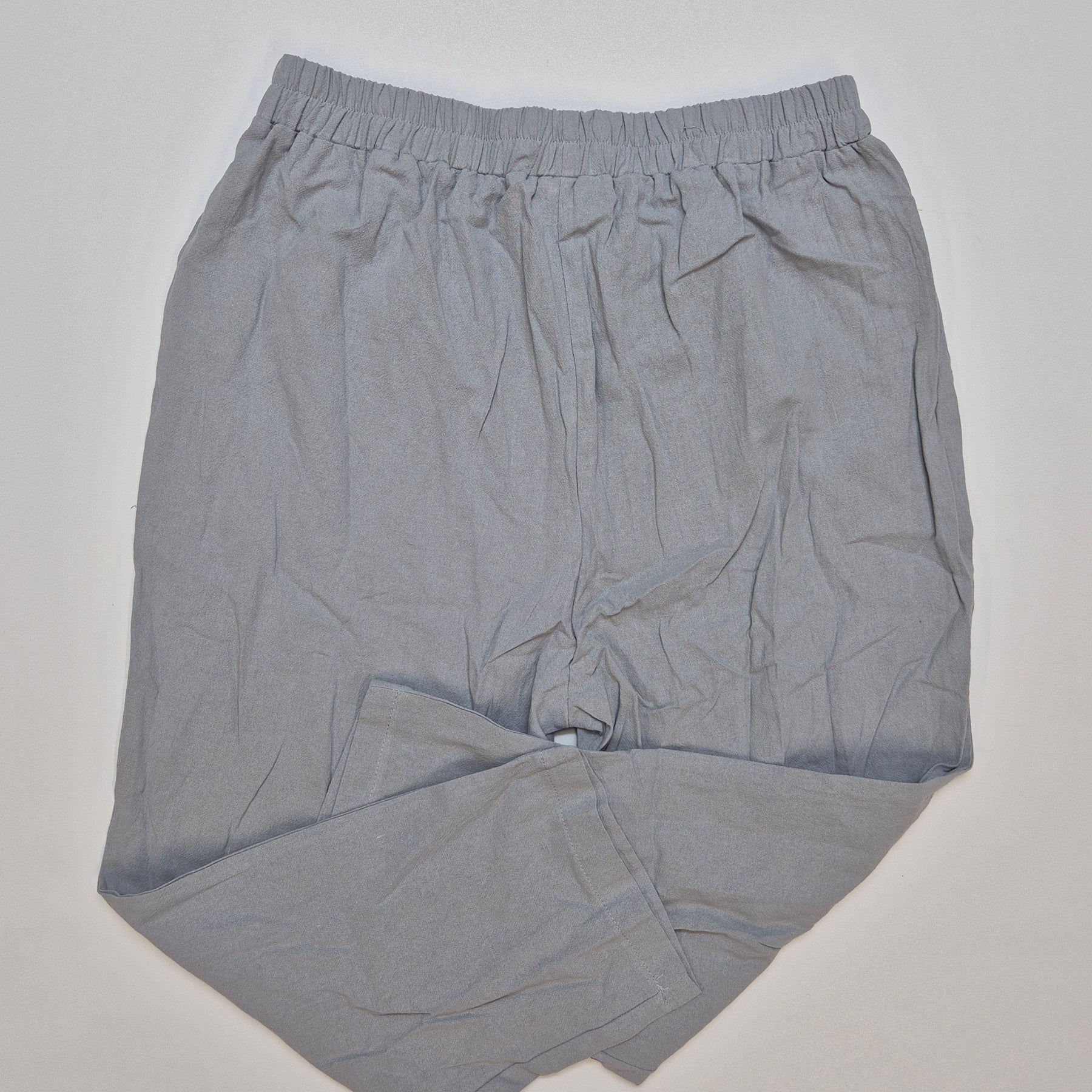 Dessa grå byxor är inte bara praktiska utan också designade för att erbjuda maximal komfort hela dagen. Byxorna har en elastisk midja som garanterar en ideal passform för alla kroppstyper. Med dess neutrala färg och enkla design är de perfekta för både hemmabruk och lätta utflykter. Skicket är begagnat men mycket gott utan synliga tecken på slitage, vilket gör dem till ett utmärkt köp.Produktspecifikationer