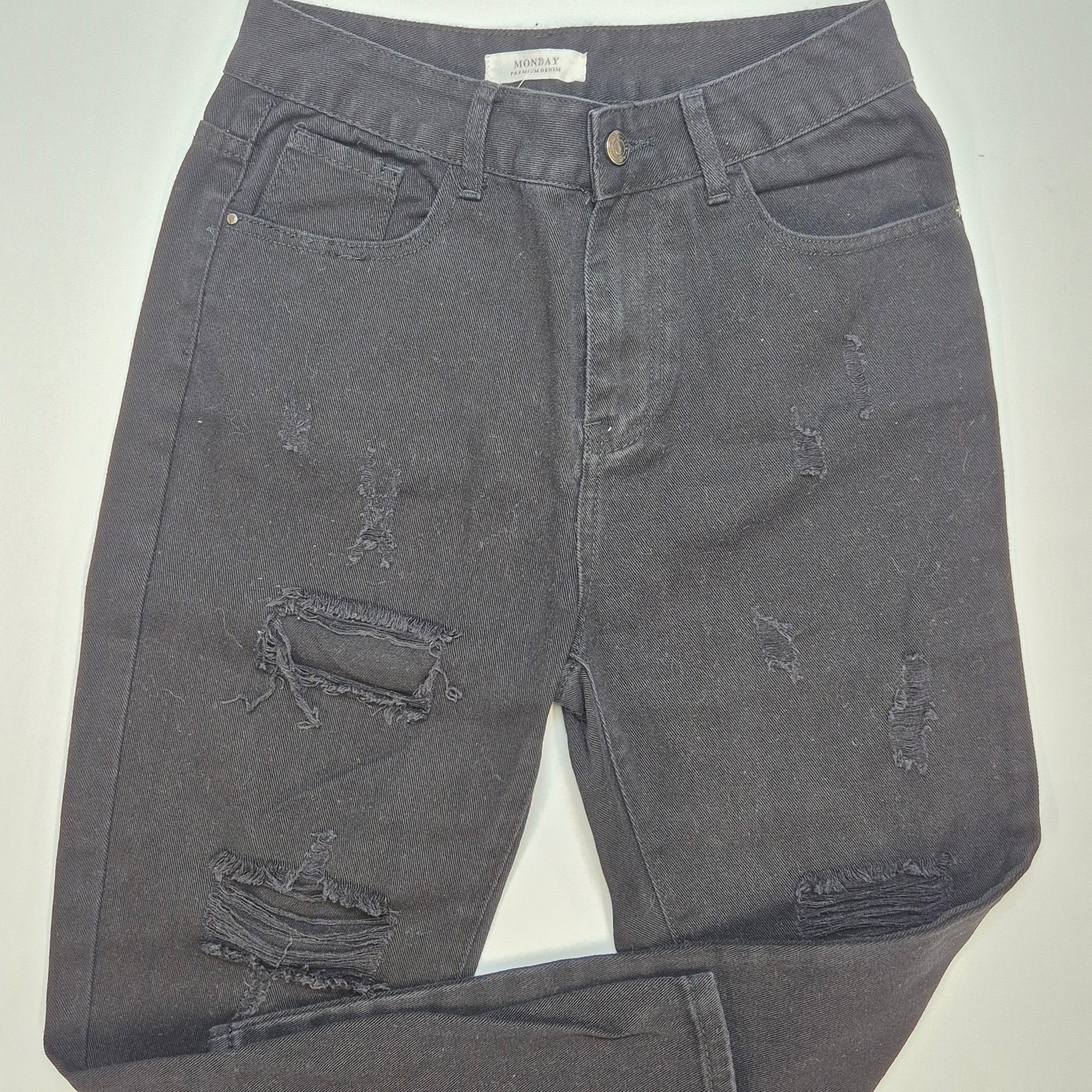 Upptäck en trendig och hållbar stil med dessa slitna, svarta jeans.Produktbeskrivning