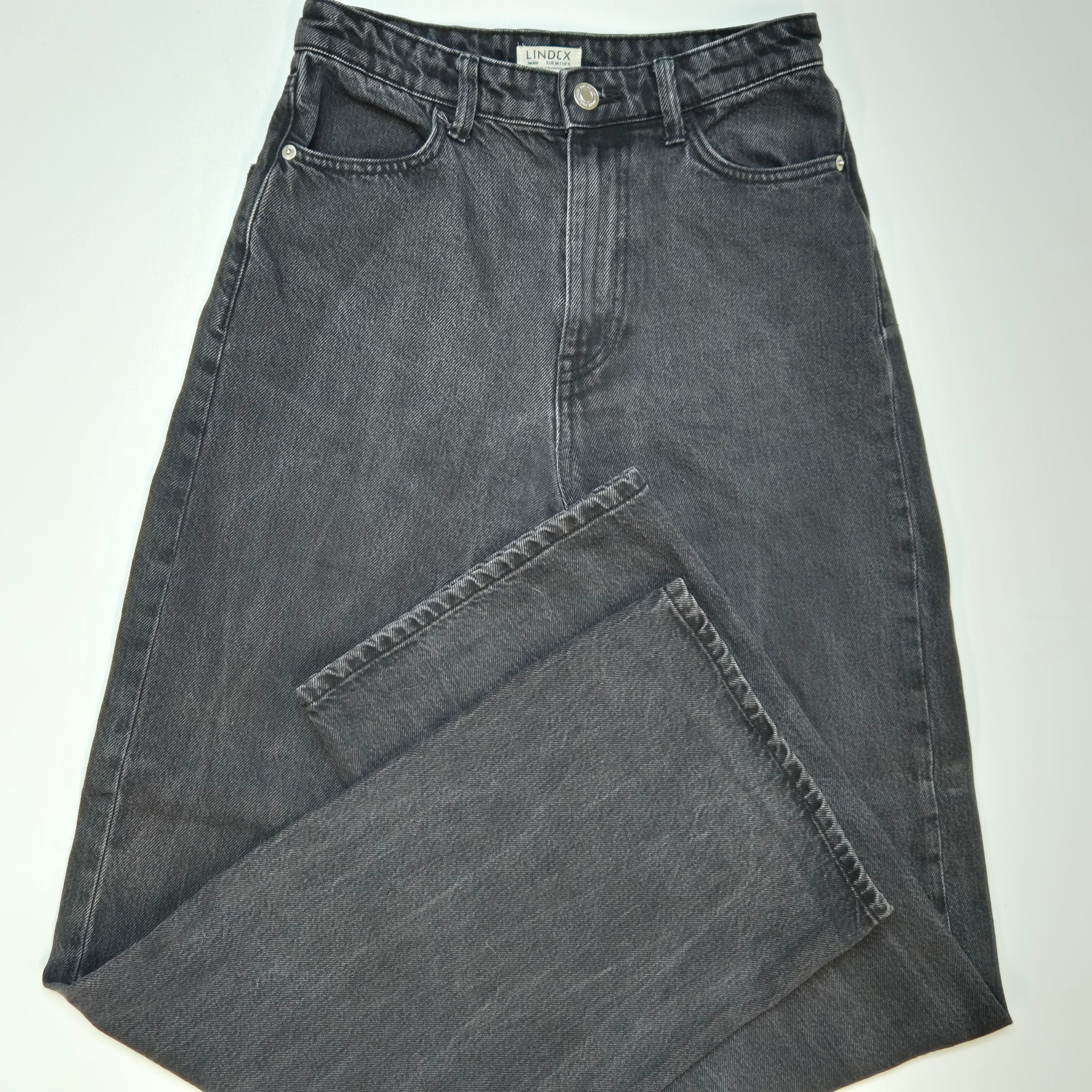 Denna snygga byxor är tillverkad av denim med en tidlös design och färg. Kjolen är av märket Lindex, känd för både kvalitet och stil. Detta plagg är perfekt för både vardag och festligare tillfällen, med en passform som framhäver figuren på ett smickrande sätt. Kjolen är begagnad men i mycket gott skick.