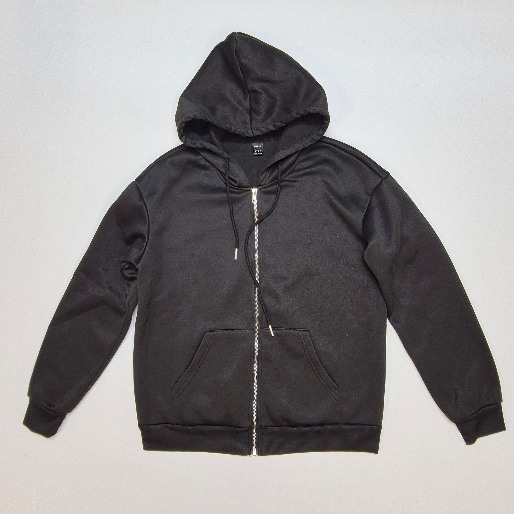 Bekväm och stilren svart hoodie från Shein, passar perfekt i varje vardagsgarderob.