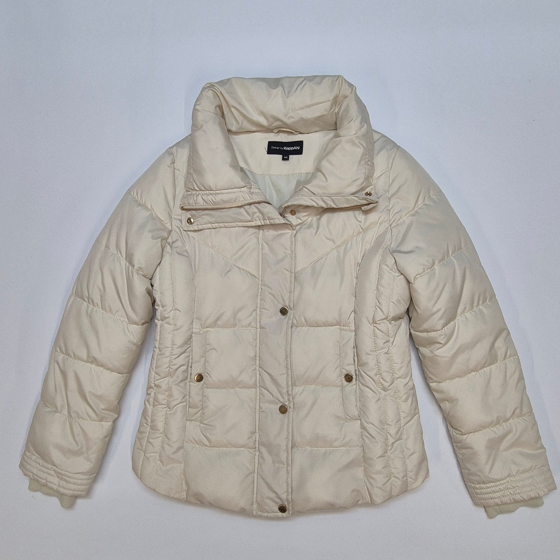 En klassisk och tidlös beige jacka som håller dig varm och stilig under kalla dagar. Jackan är från välkända KappAhl och har en praktisk, quiltad design med ett mjukt foder för optimal komfort. Med sin neutrala färg och högkvalitativa material är jackan perfekt för både vardag och speciella tillfällen. Skick: Begagnad men i mycket gott skick.