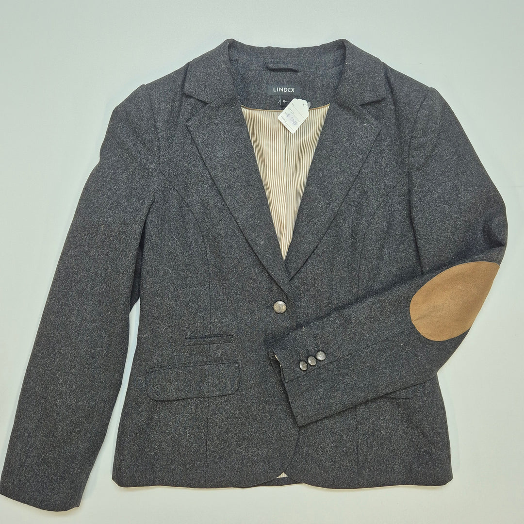 Denna stilsäkra kavaj i mörkgrått utförande är från det välkända varumärket Lindex. Kavajen är både praktisk och chic med sina skarpa linjer och klassiska passform, vilket gör den idealisk för businessmöten eller formella tillställningar. Komplett med dekorativa ärmknappar och en kontrasterande beige insida, erbjuds en sofistikerad look. Produkten är begagnad men i mycket gott skick, vilket erbjuder både kvalitet och stil till ett förmånligt pris.