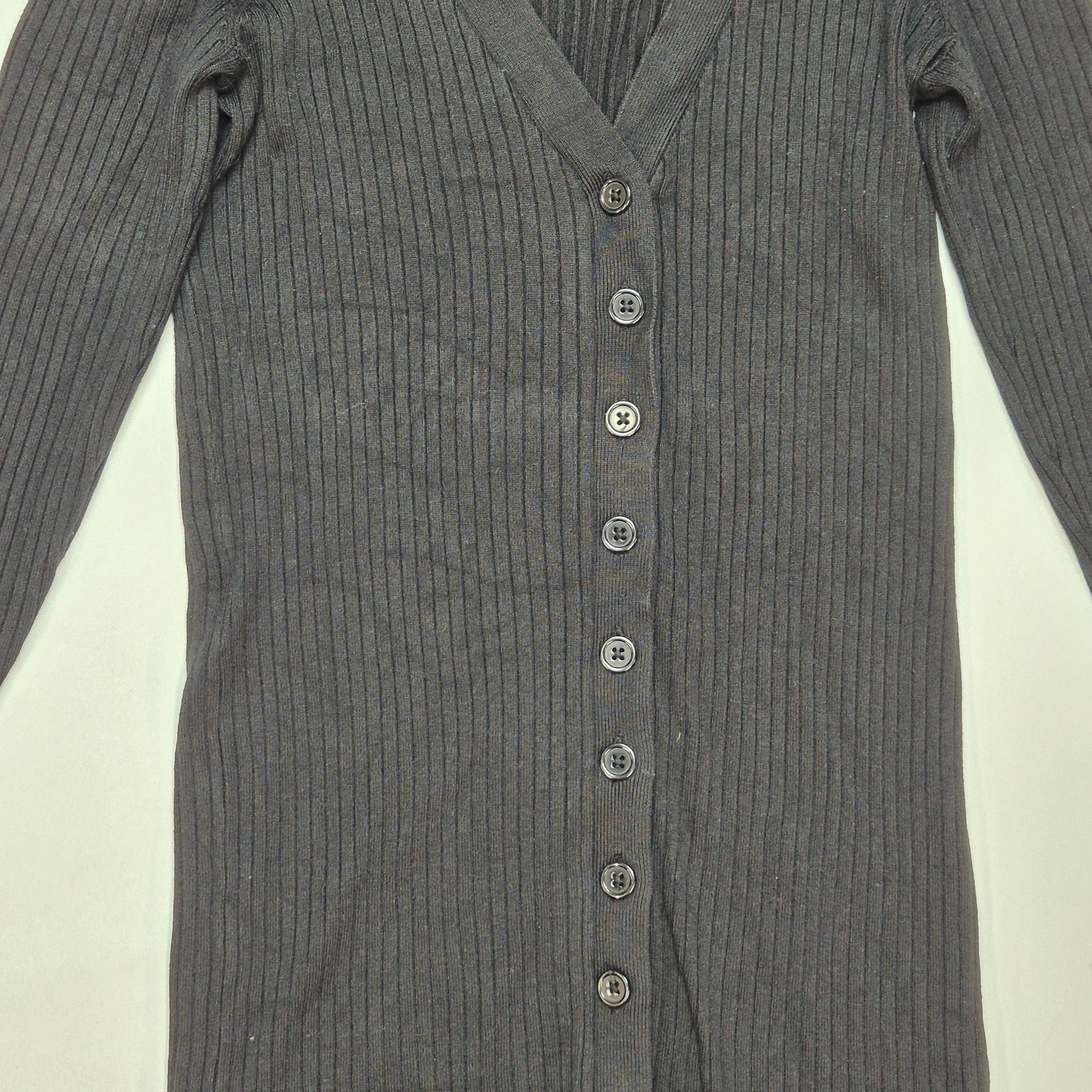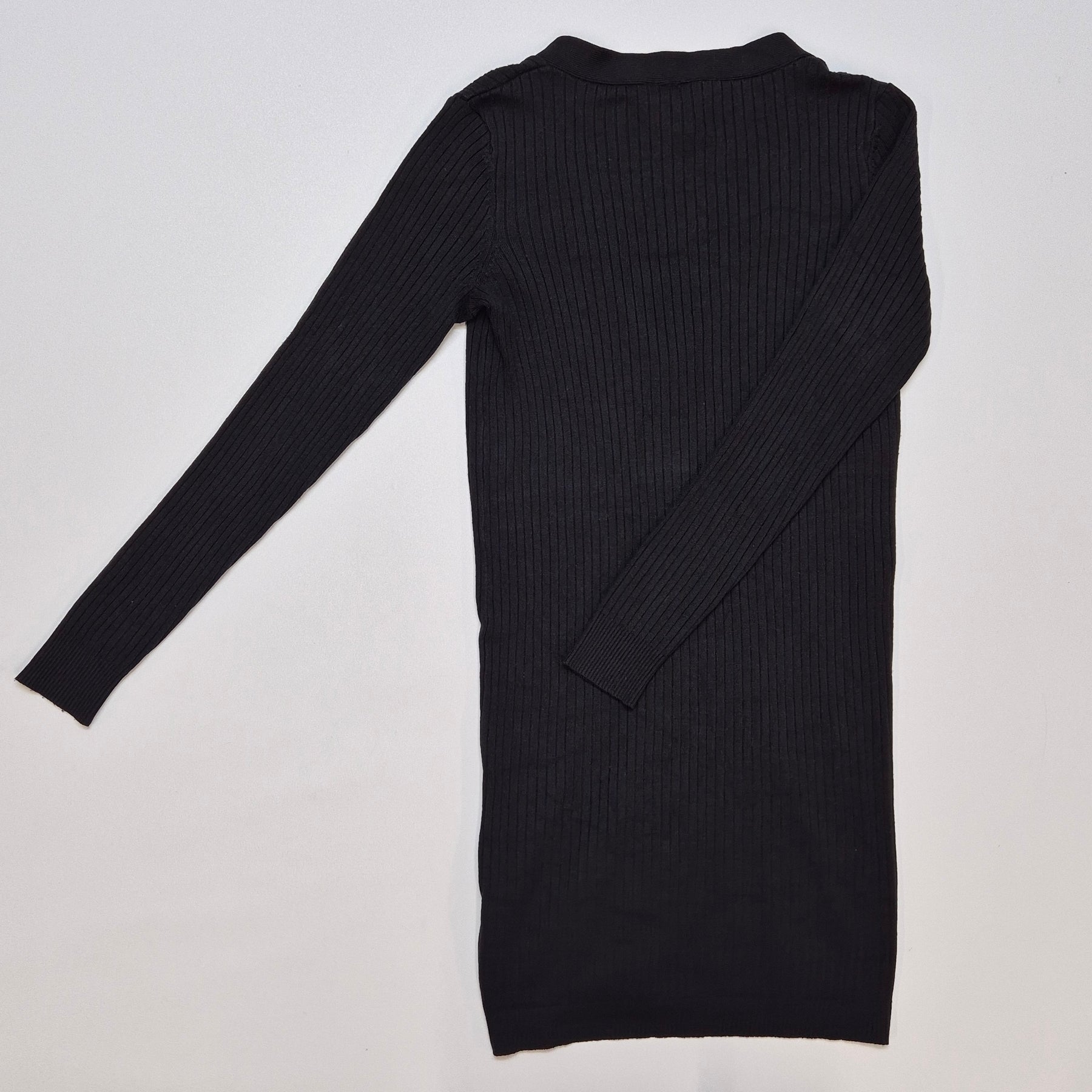 Denna klassiska svarta kofta av hög kvalitet från Calvin Klein är ett måste i varje garderob. Med sitt ribbade mönster och diskreta knäppning fram tillför den en subtil elegans till varje outfit. Koftan är mjuk och behaglig, idealisk för såväl kontoret som avslappnade tillfällen. Trots att den är begagnad är dess skick fortfarande utmärkt och visar minimala tecken på användning.