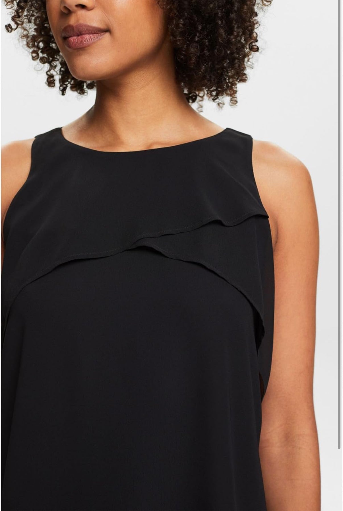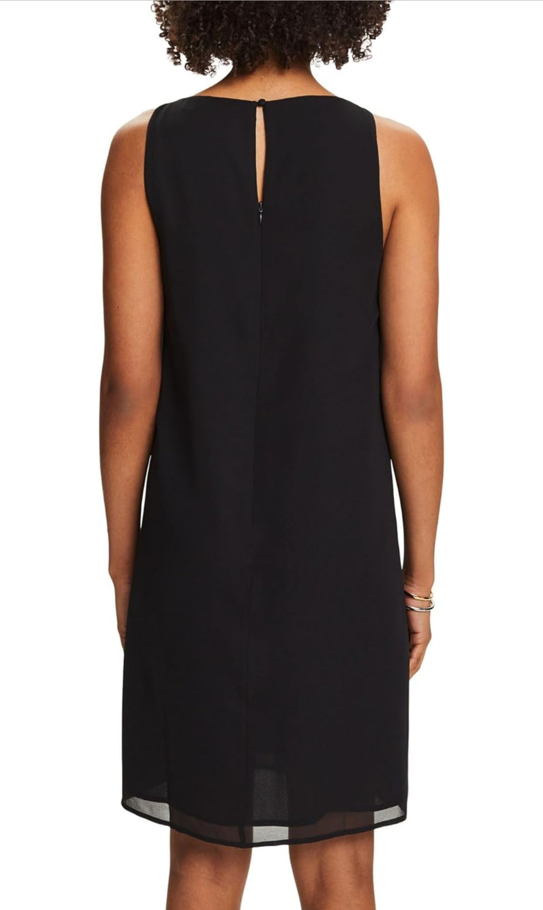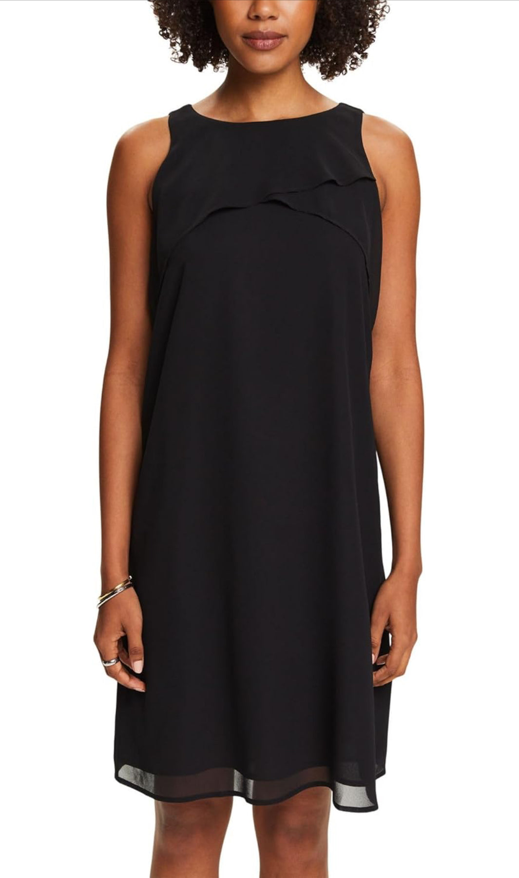 Denna vackra klänning är det ultimata valet för varje elegant evenemang. Klänningen är designad med en diskret och stilfull volangdetalj vid halsen, vilket ger ett sofistikerat intryck. Dess lösa passform gör den bekväm att bära samtidigt som den behåller en klassisk silhuett. Begagnad men i mycket gott skick, vilket gör den till ett hållbart och prisvärt alternativ.Produktspecifikationer