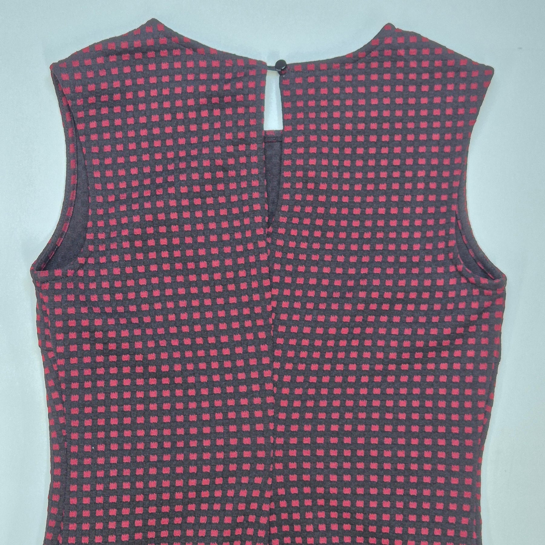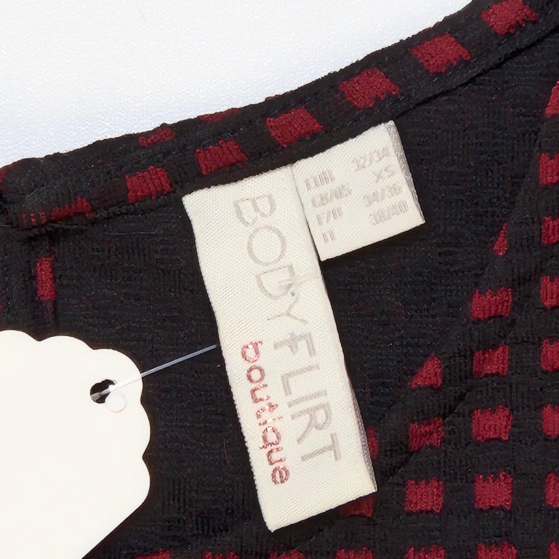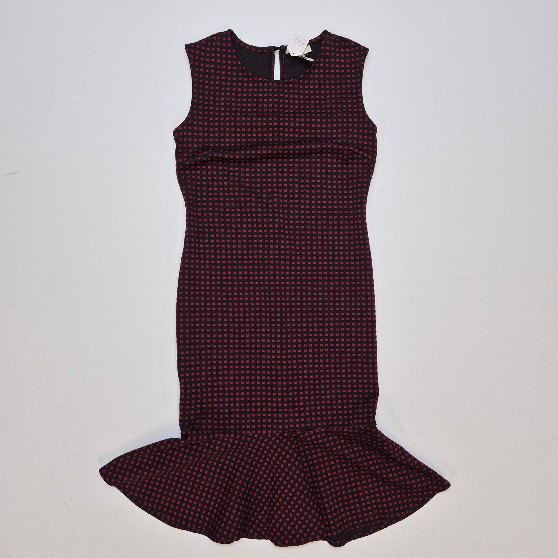Denna vackra klänning från Bodyflirt har en tidlös design med ett diskret rutmönster som kontrasterar mot en mörk bakgrund för en distinkt och attraktiv look. Klänningen är utformad för att smickra figuren med sin utsvängda nederdel och ärmlösa topp, vilket gör den perfekt för såväl vardag som fest. Den är begagnad men i mycket gott skick med inga synliga tecken på slitage.