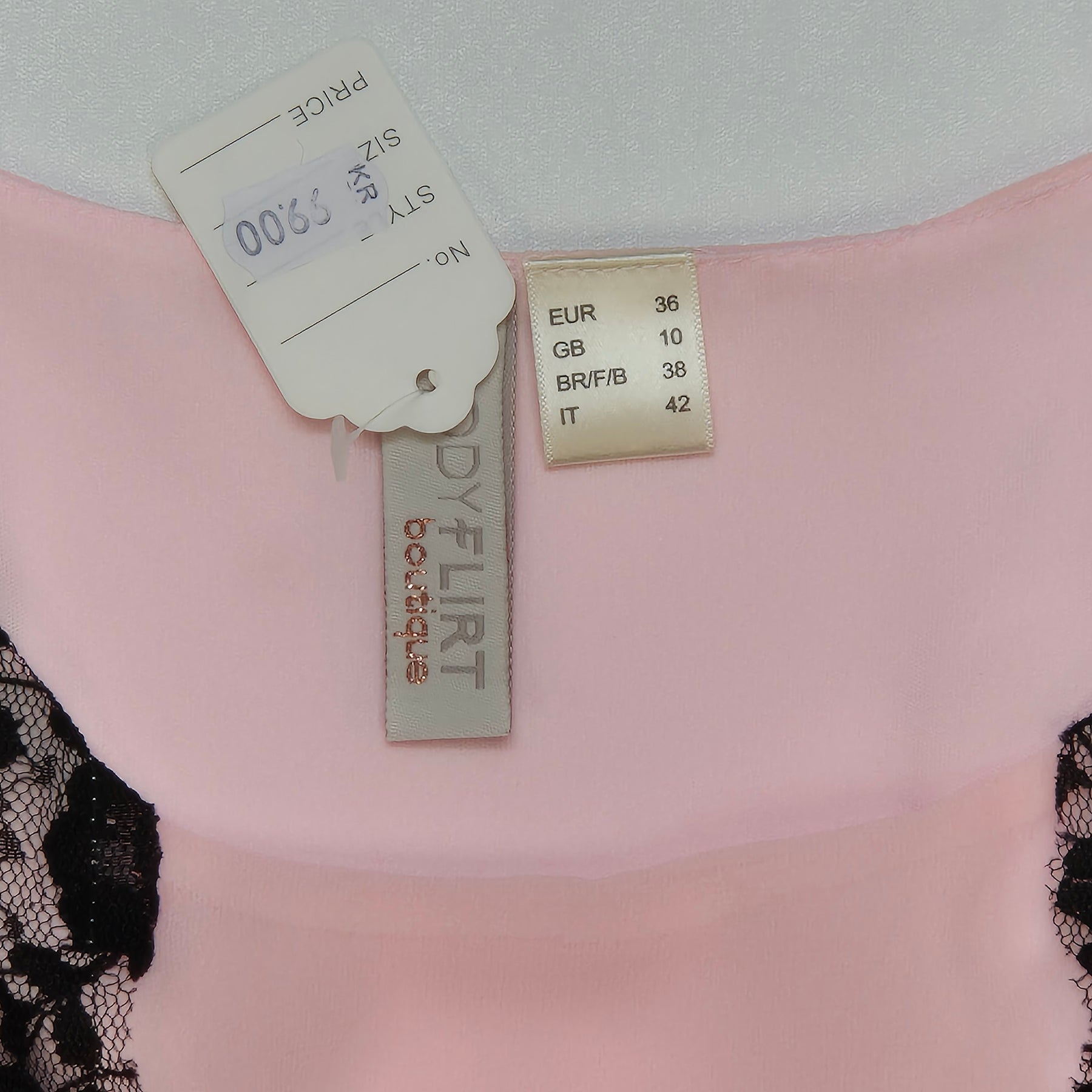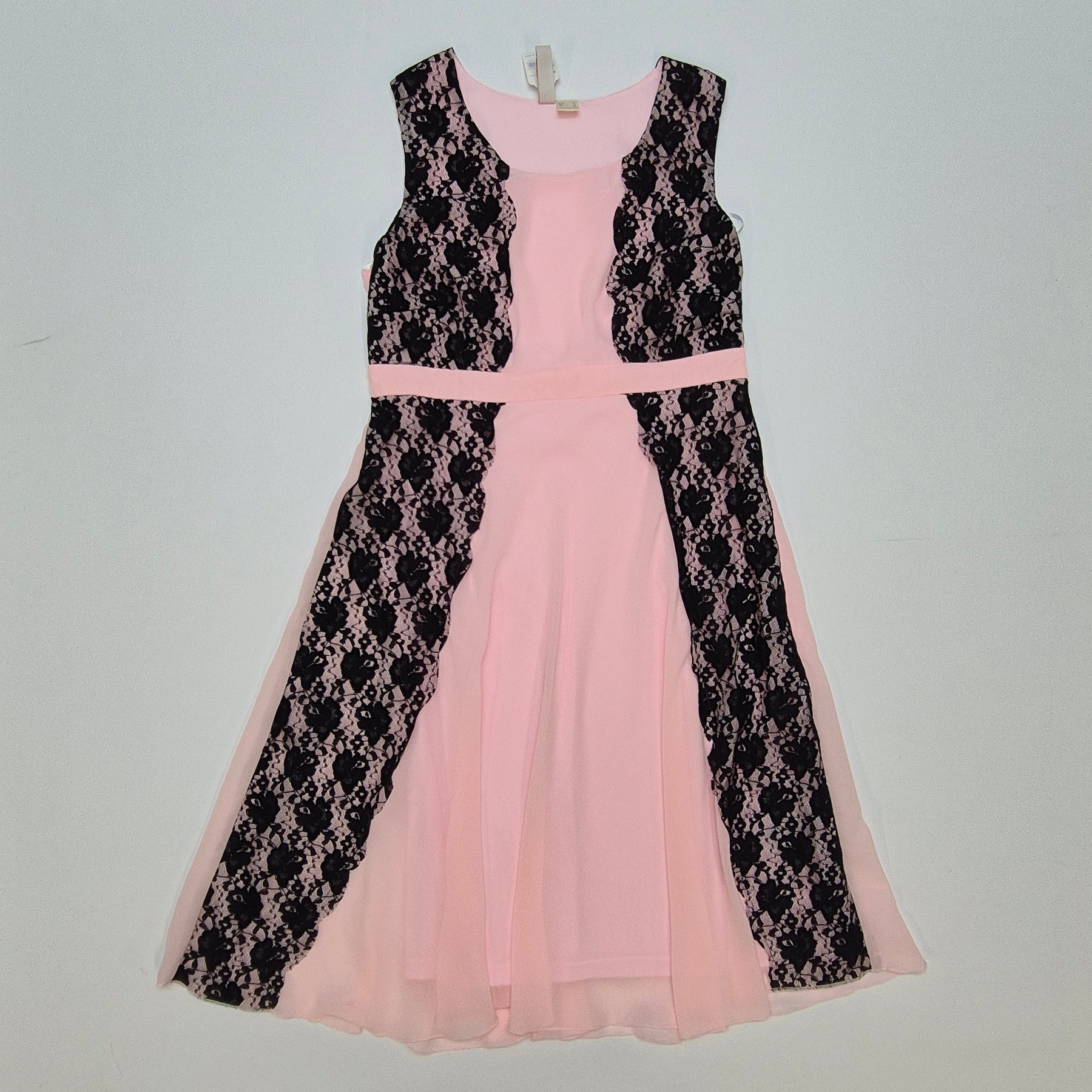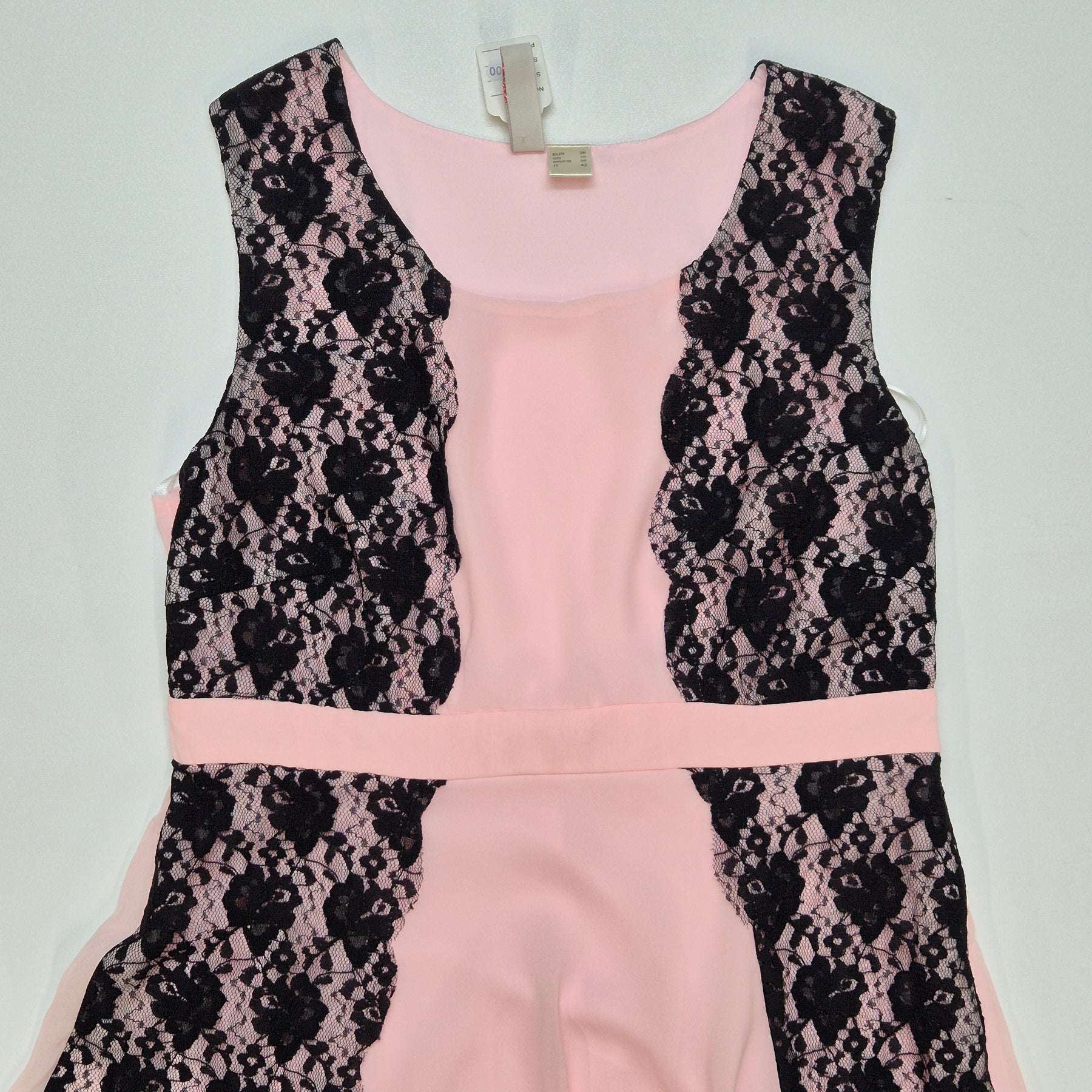 - Denna eleganta klänning kombinerar mjukt rosa tyg med svart spets för en klassisk och tidlös look. Märket är D. Flirt, känt för sin höga kvalitet och unika design. Perfekt för bröllop, baler eller andra festliga evenemang. Klänningen är begagnad men i nyskick, vilket gör den till ett utmärkt köp för den modeintresserade.