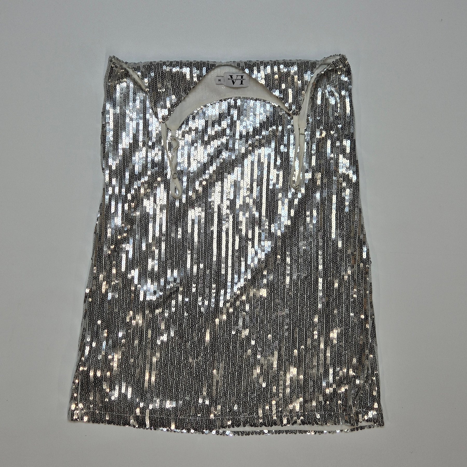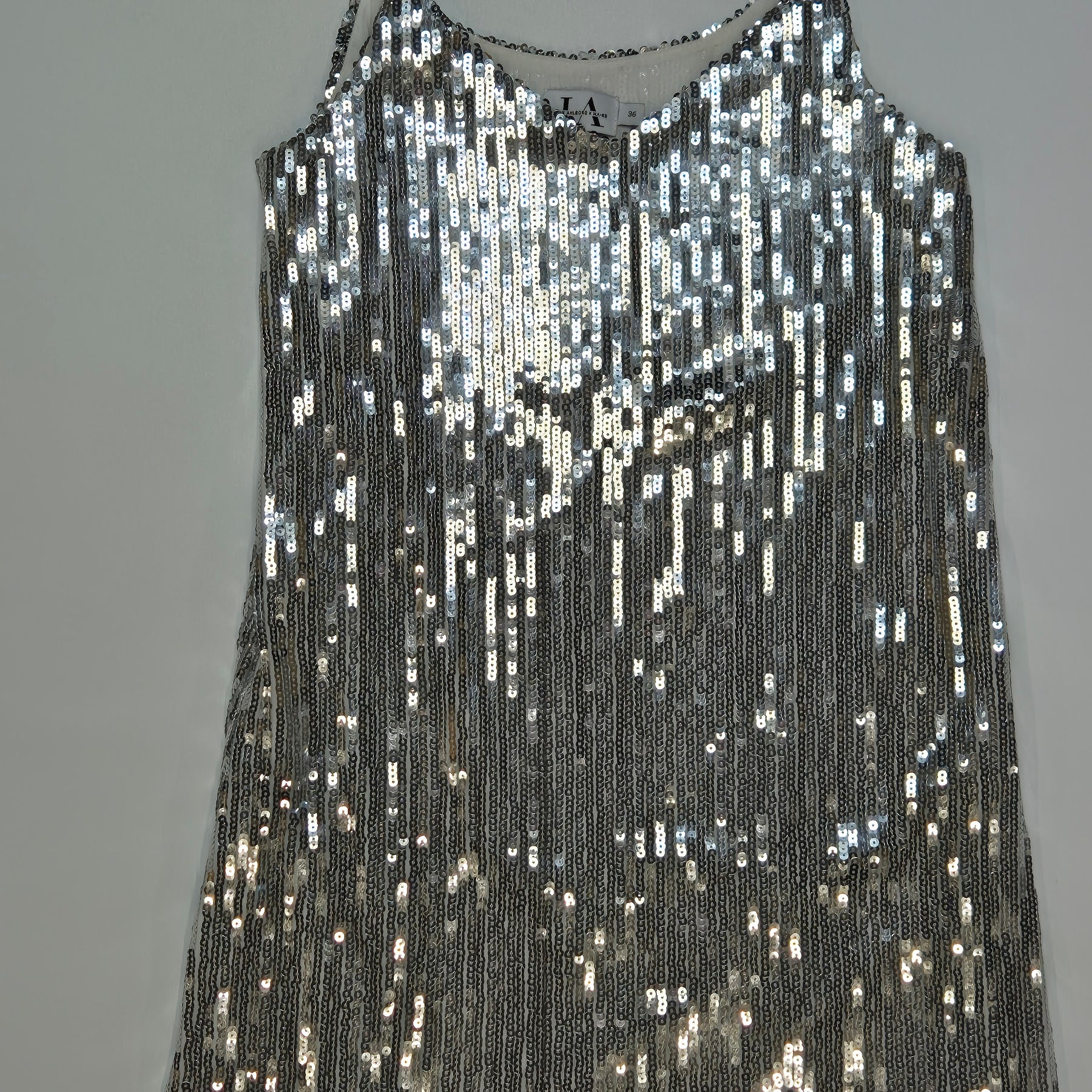 Denna chic paljettklänning är designad av Linn Ahlborg i ett exklusivt samarbete med det populära varumärket NA-KD. Klänningen har fina detaljer och är sydd i en glamorös stil som passar perfekt för festliga tillfällen. Den är begagnad men i mycket gott skick, vilket gör att du kan njuta av hög modekänsla till ett förmånligt pris.Produktspecifikationer