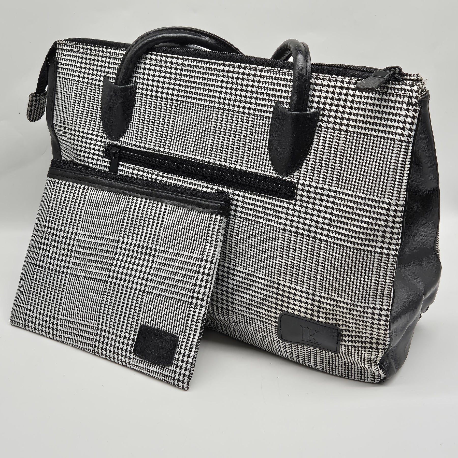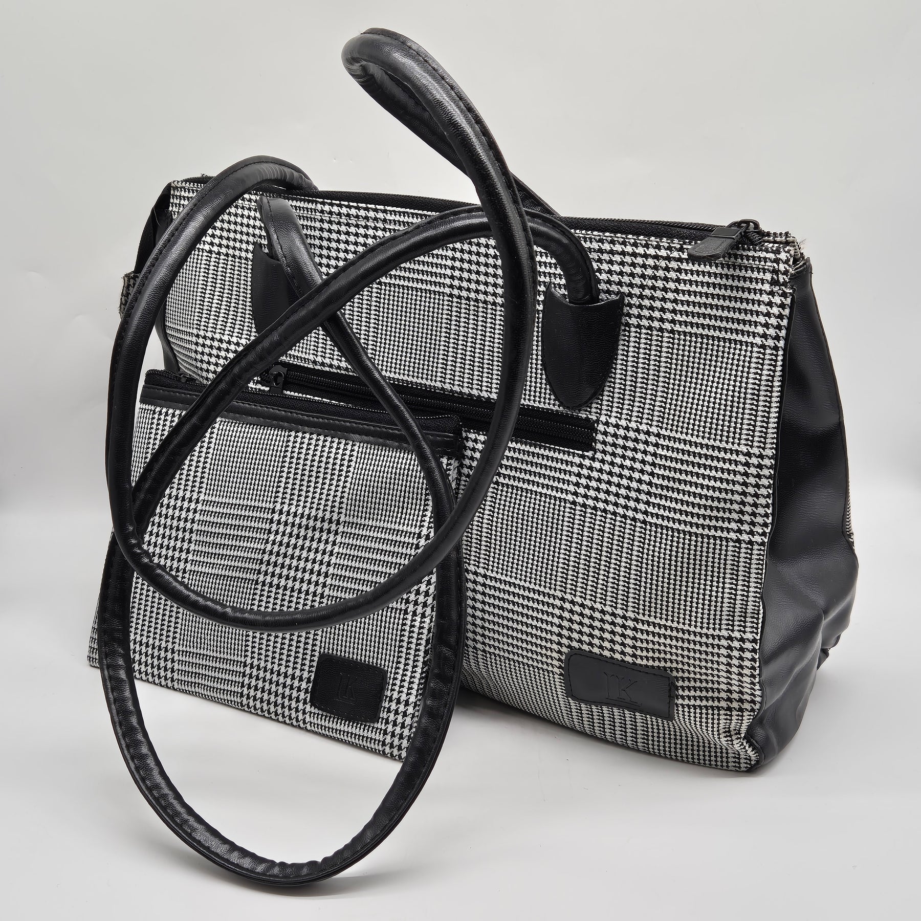 Upptäck det stilrena och tidlösa hantverket med denna unika väska och matchande plånbok i pied-de-poule-mönster.Produktbeskrivning