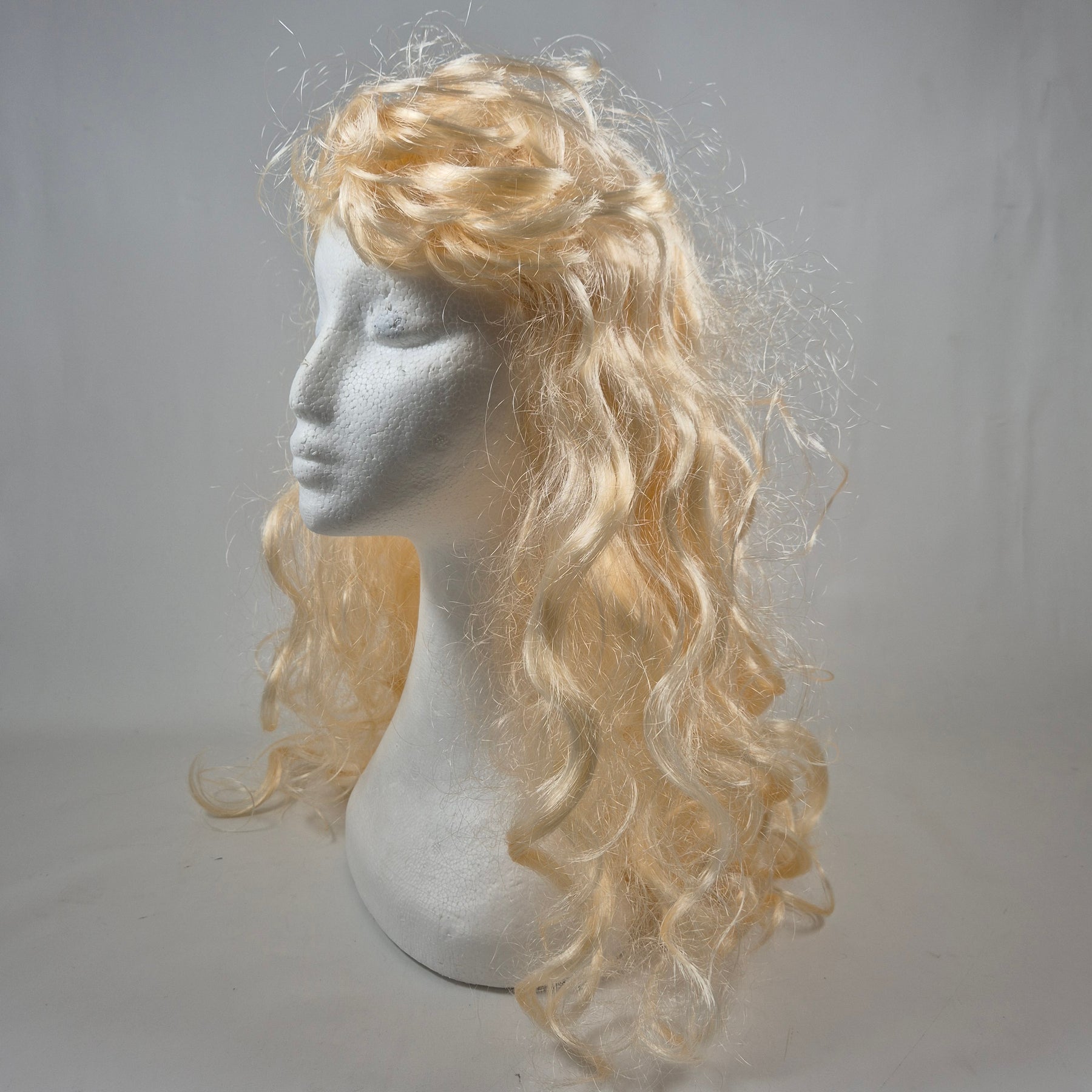 Denna långa, lockiga peruk i en vacker blonde nyans erbjuder både stil och komfort. Tillverkad med högkvalitativt syntetmaterial som ser naturligt och följsamt ut. Perukens interna struktur är designad för att ge en bekväm och säker passform, vilket gör den idealisk för både långvarigt bruk och speciella tillfällen. Produkten är begagnad men i mycket gott skick och kommer utan synliga slitningar.Produktspecifikationer