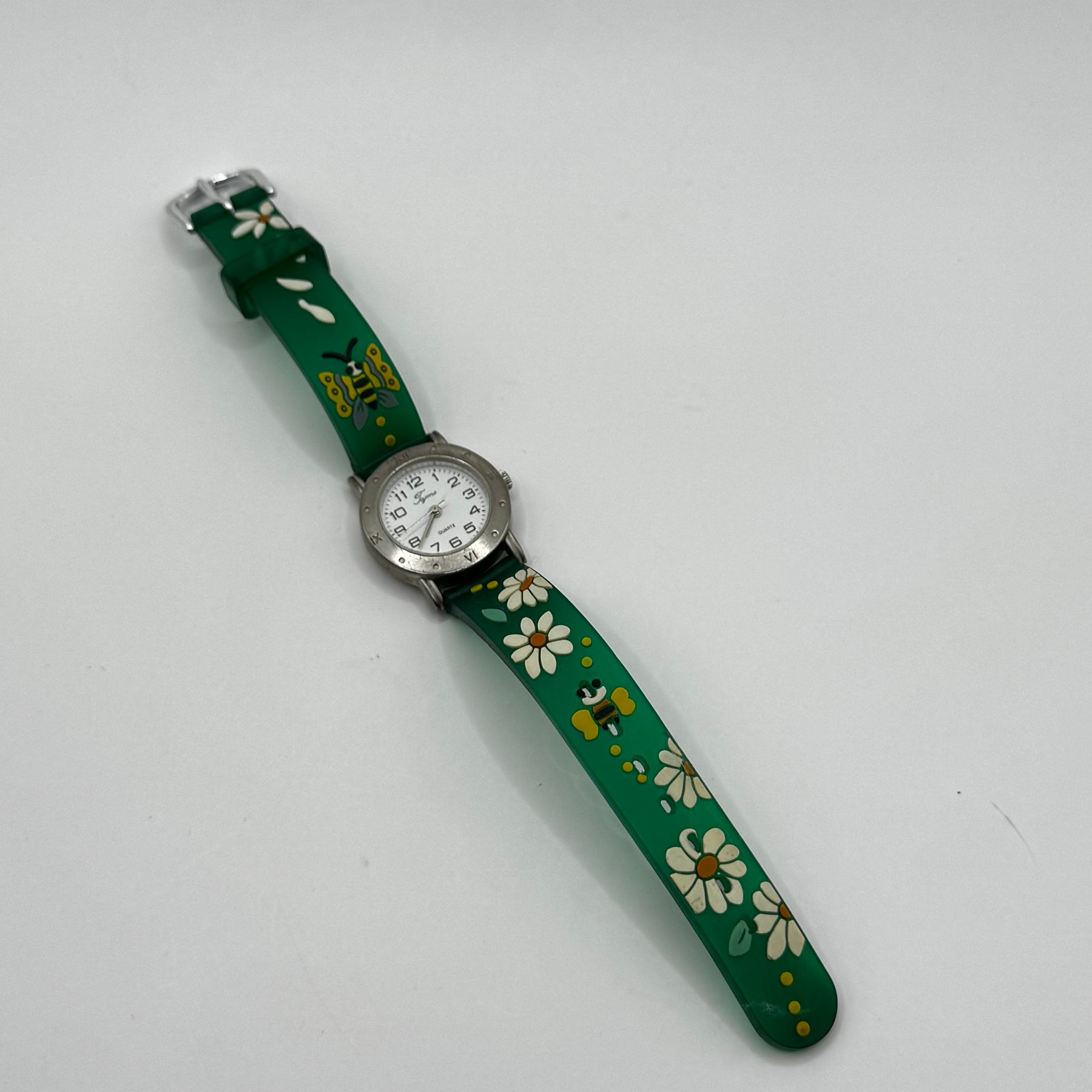 Denna armbandsklocka från Fjms är en unik replica med art deco-stil och grönt armband som verkligen sticker ut. Med sin klassiska urtavla och kvartsrörelse kombinerar klockan tidlös design med pålitlig funktionalitet. Den är idealisk för både dagligt bruk och särskilda tillfällen. Trots att den är begagnad, är klockan i mycket gott skick, vilket gör den till ett utmärkt köp för samlare eller som ett fashionabelt och praktiskt tillbehör.Produktspecifikationer