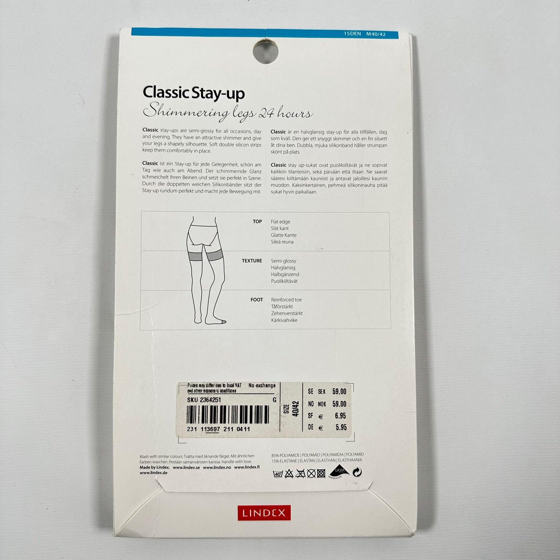 Dessa Stay-up strumpor från Bella's New Name erbjuder en perfekt kombination av komfort och stil. Designade för att ge ett skimrande intryck över 24 timmar, de är idealiska för både vardagsbruk och speciella tillfällen. De dubbla silikonremsorna längs toppkanten säkerställer att de sitter på plats utan att glida. Är oanvända och i originalförpackning, vilket gör dem till ett utmärkt köp.Produktspecifikationer