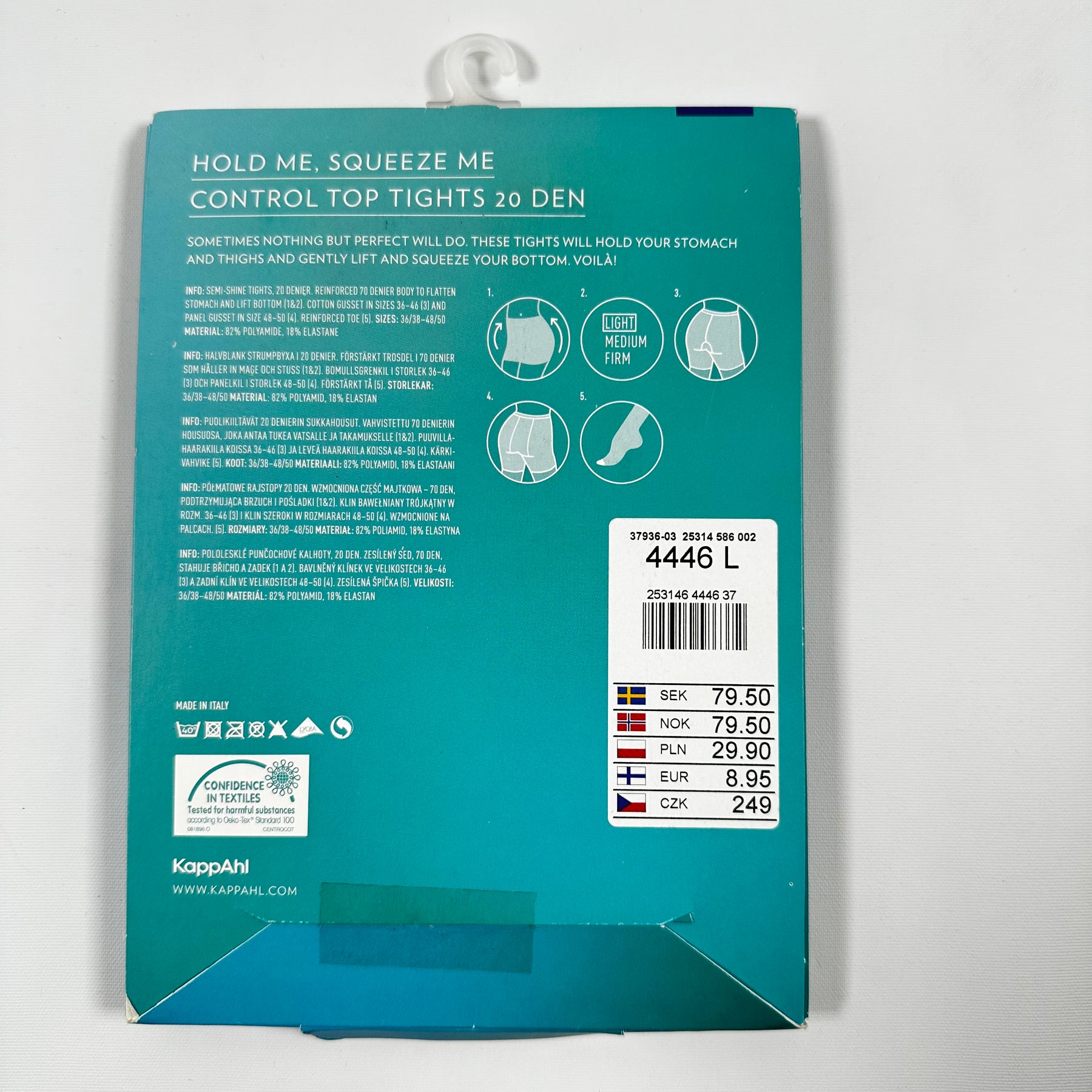 Dessa kontrolltopstrumpbyxor är designade för att både forma och stödja, perfekt för att förbättra din silhuett under kläder. Tillverkade av KappAhl, dessa tights är inte bara funktionella utan också snyggt utformade med en diskret och slät finish. Med en medelhög fasthet hjälper de till att hålla in och lyfta på strategiska områden, vilket gör dem idealiska för dagligt bruk. Produkten är ny och kommer i originalförpackning.3. Produktspecifikationer