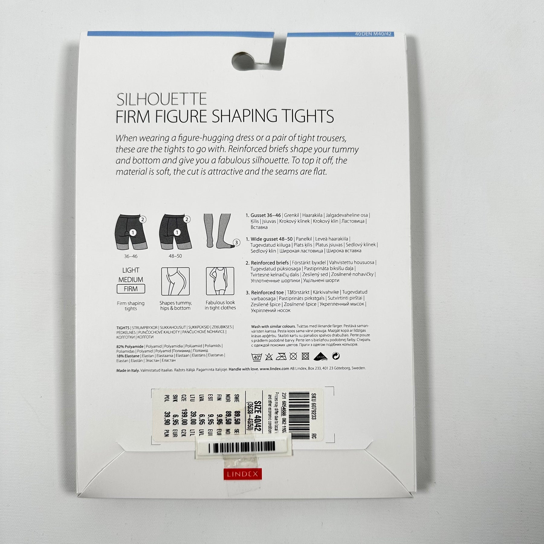 SILHOUETTE strumpbyxor är designade för att smickra din figur med förstärkt trosdel som formar både mage och höfter. Materialet är mjukt och skärningen är designad för att ligga slätt mot huden utan att skava. Dessa strumpbyxor är perfekta för att bäras under figurnära klänningar eller tajta byxor, och ger en jämn och attraktiv kontur. Produkten är ny och oöppnad, vilket garanterar dess utmärkta skick.