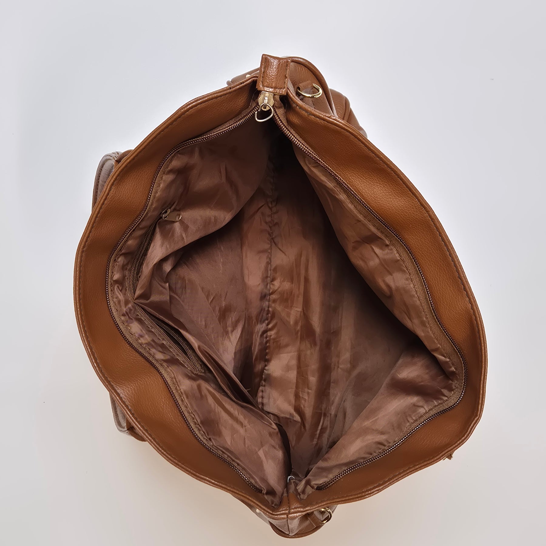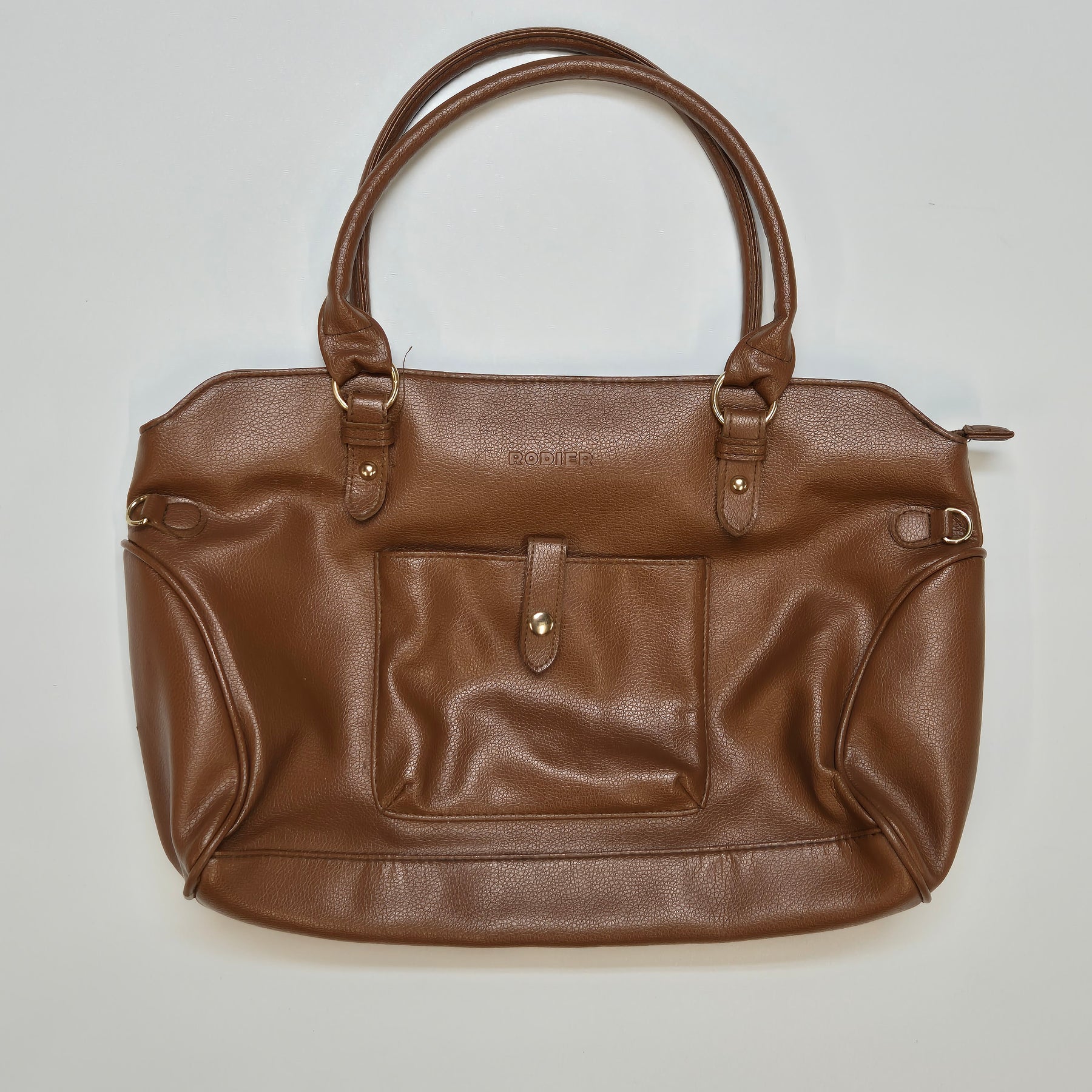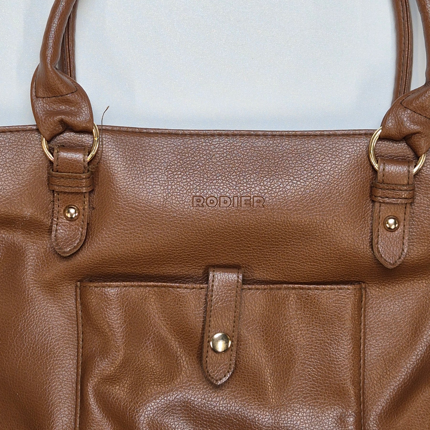 Denna stilfulla handväska är designad av det välkända varumärket Rodier. Väskan är tillverkad i kvalitativt brunt läder och har en rymlig design med flera fack, vilket gör den idealisk för att organisera dina tillhörigheter. Den kompakta storleken och det tidlösa utseendet gör den till en oumbärlig följeslagare för alla tillfällen. Väskan är begagnad men behåller sitt utmärkta skick, vilket gör den till ett hållbart och elegant val.Produktspecifikationer