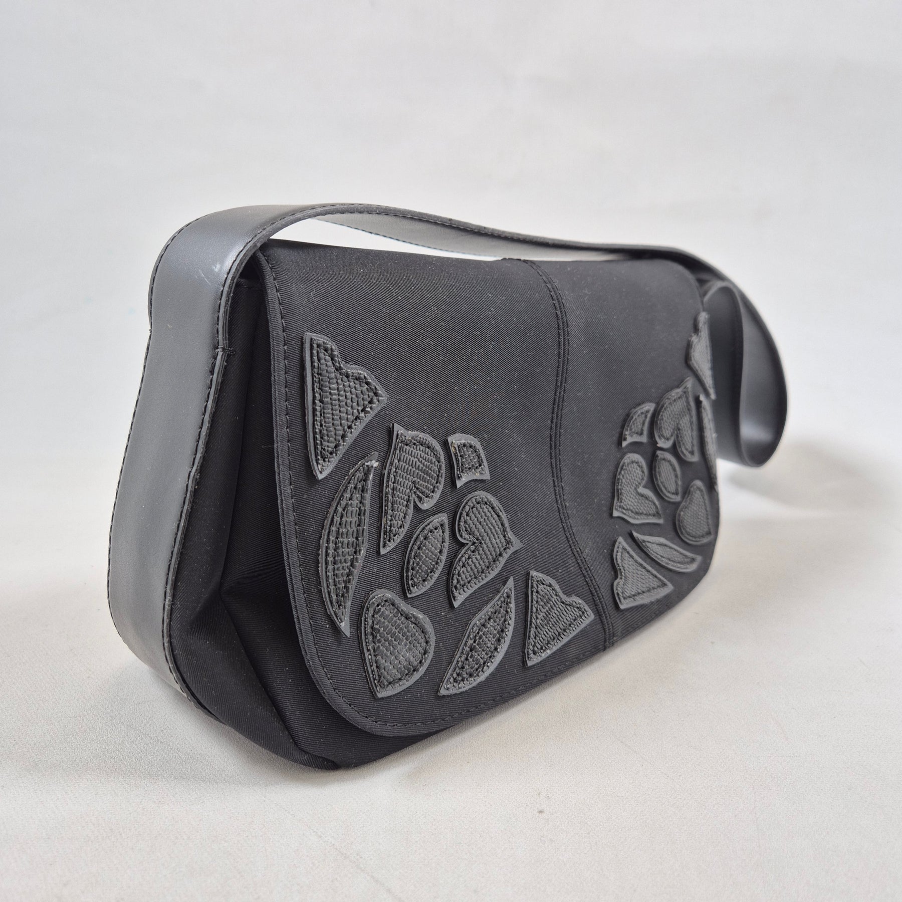 Denna väska från det välkända varumärket Sisley kännetecknas av sitt sofistikerade utseende med dekorativa utsmyckningar i form av hjärtan på framsidan. Den är både funktionell och stilsäker, och passar perfekt för både vardagsbruk och speciella tillfällen. Väskan är begagnad men i mycket gott skick, vilket gör den till ett utmärkt köp för den modeintresserade.Produktspecifikationer