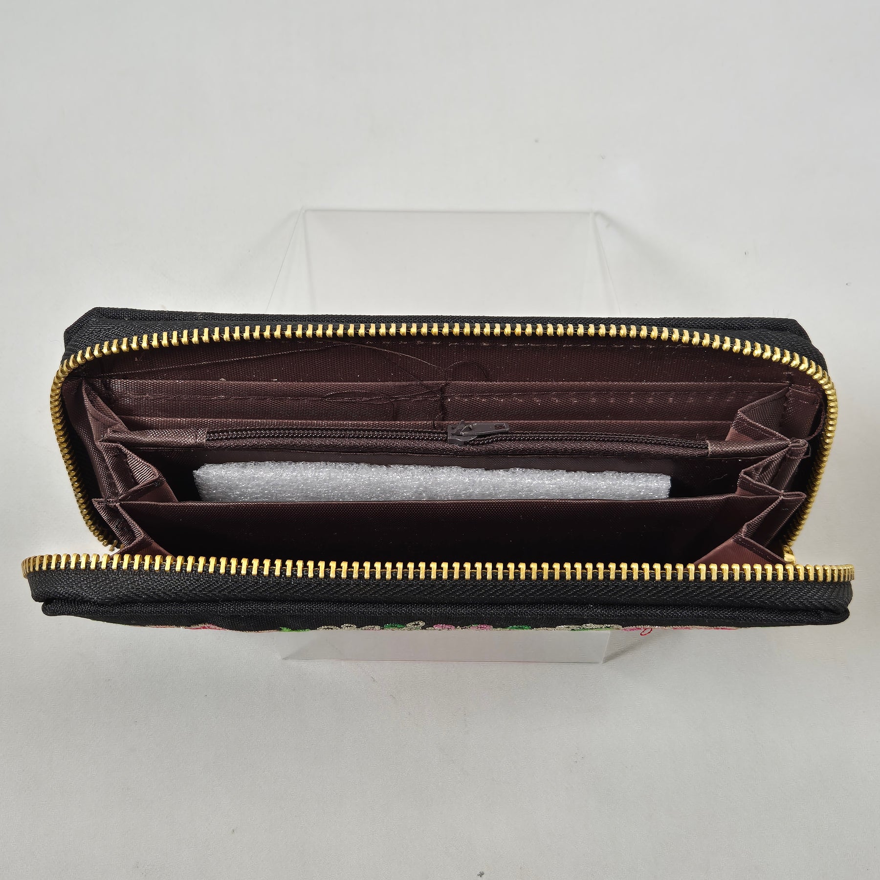 Denna eleganta svarta damväska är framhävd med utsökta blomsterbroderier i rosa och grönt, kompletterat med glänsande pärlor och detaljer. Dess kompakta design och flera fack inuti gör den perfekt för både vardagligt bruk och speciella tillfällen. Väskan är begagnad men mycket välbevarad, vilket gör den till ett fantastiskt fynd för den stilmedvetna.Produktspecifikationer
