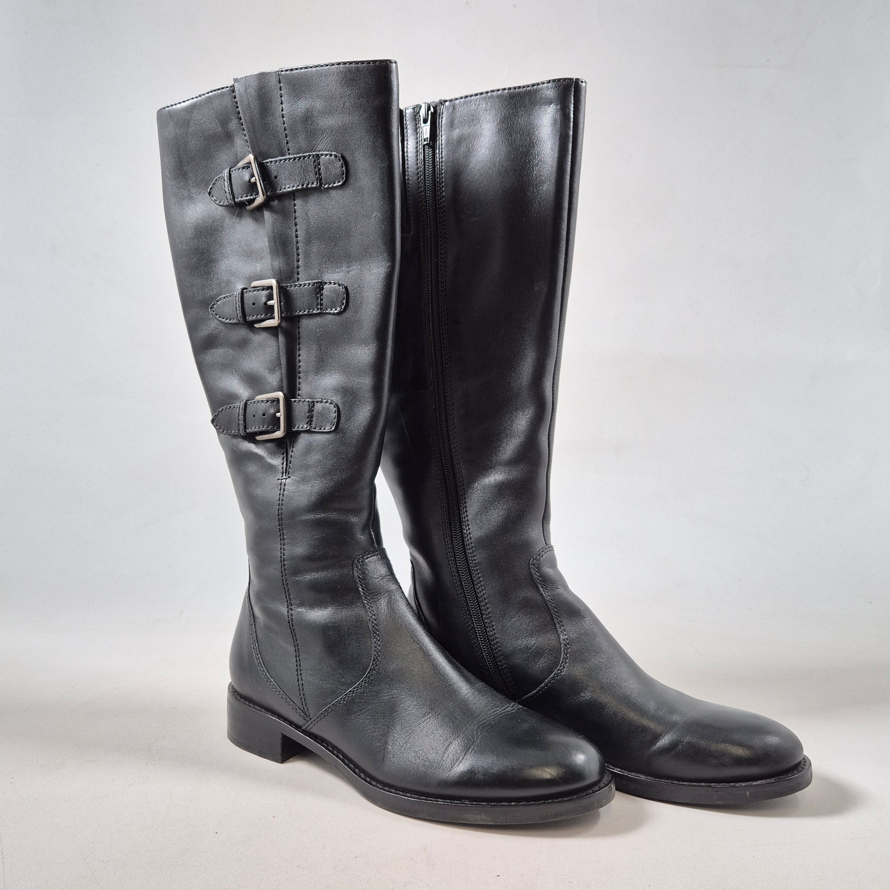 Dessa sofistikerade stövlar är tillverkade av högkvalitativt läder och designade för både komfort och hållbarhet. Ecco, känt för sin utmärkta skokvalitet, erbjuder här en klassisk modell med sidenmatt finish och justerbara spännen för en perfekt passform. Stövlarna är begagnade men i mycket gott skick, vilket gör dem till ett utmärkt köp för modeintresserade som värderar både stil och kvalitet.