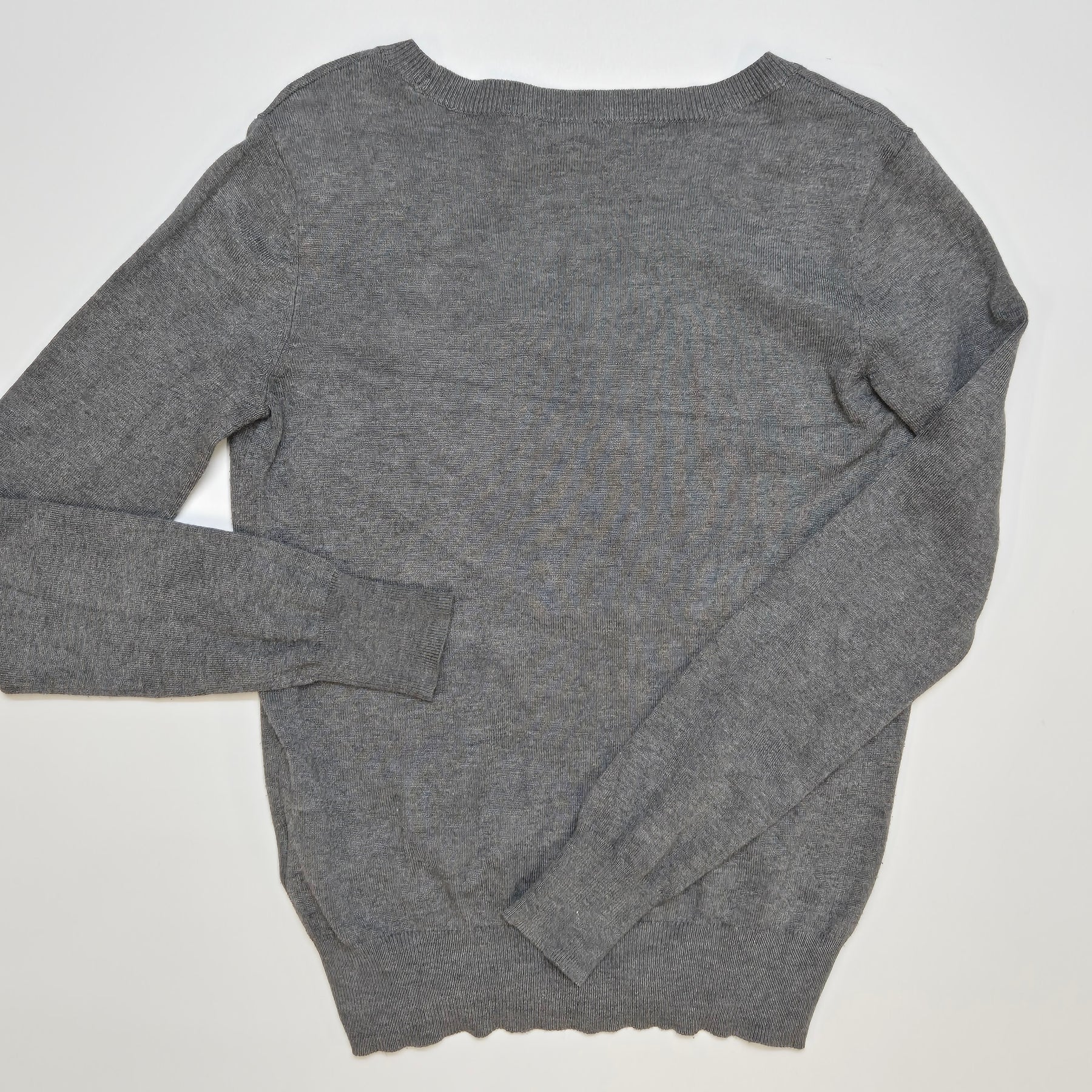 Denna stilrena tröja är tillverkad i ett mjukt och behagligt material, idealisk för dagligt bruk. Med sin klassiska design och neutrala grå färg, är den en mångsidig del av din garderob som enkelt kan kombineras med andra plagg. Den håller dig inte bara varm under kyligare dagar utan också elegant till alla tillfällen. Tröjan är begagnad men i mycket gott skick, vilket gör den till ett fantastiskt hållbart modeval.Kategori | Tröja |