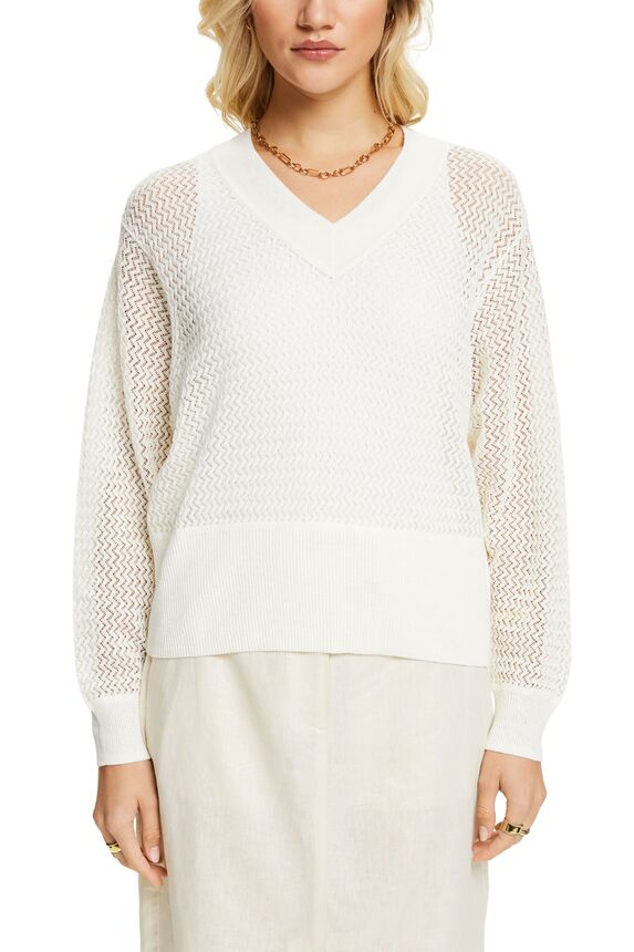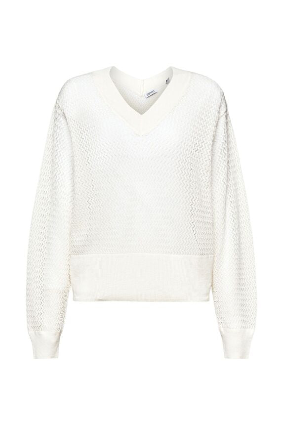 Elegant och modern vit stickad tröja från Esprit, perfekt för höstens och vinterns garderob.Produktbeskrivning