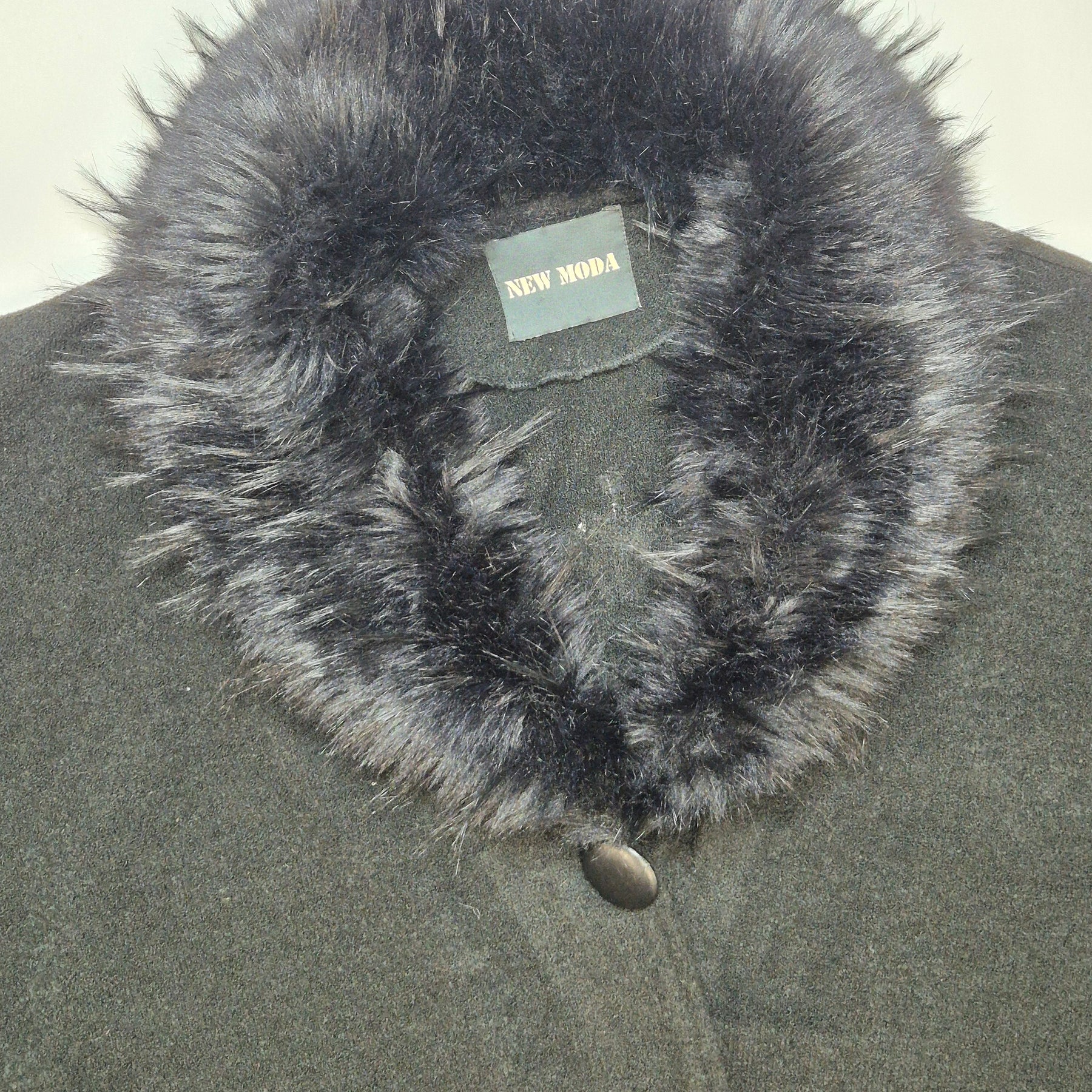 Denna sofistikerade kragponcho är tillverkad av mjukt material med en lyxig krage i fuskmink. Mörkgrå i färgen med diskreta knappdetaljer vid nacken för enkelt fästande. Märket New Moda är känt för sin kvalitet och stilrena design, vilket gör denna poncho till ett perfekt komplement för din höst- och vintergarderob. Produkten är begagnad men i utmärkt skick, vilket bidrar till en hållbar modekonsumtion.Produktspecifikationer