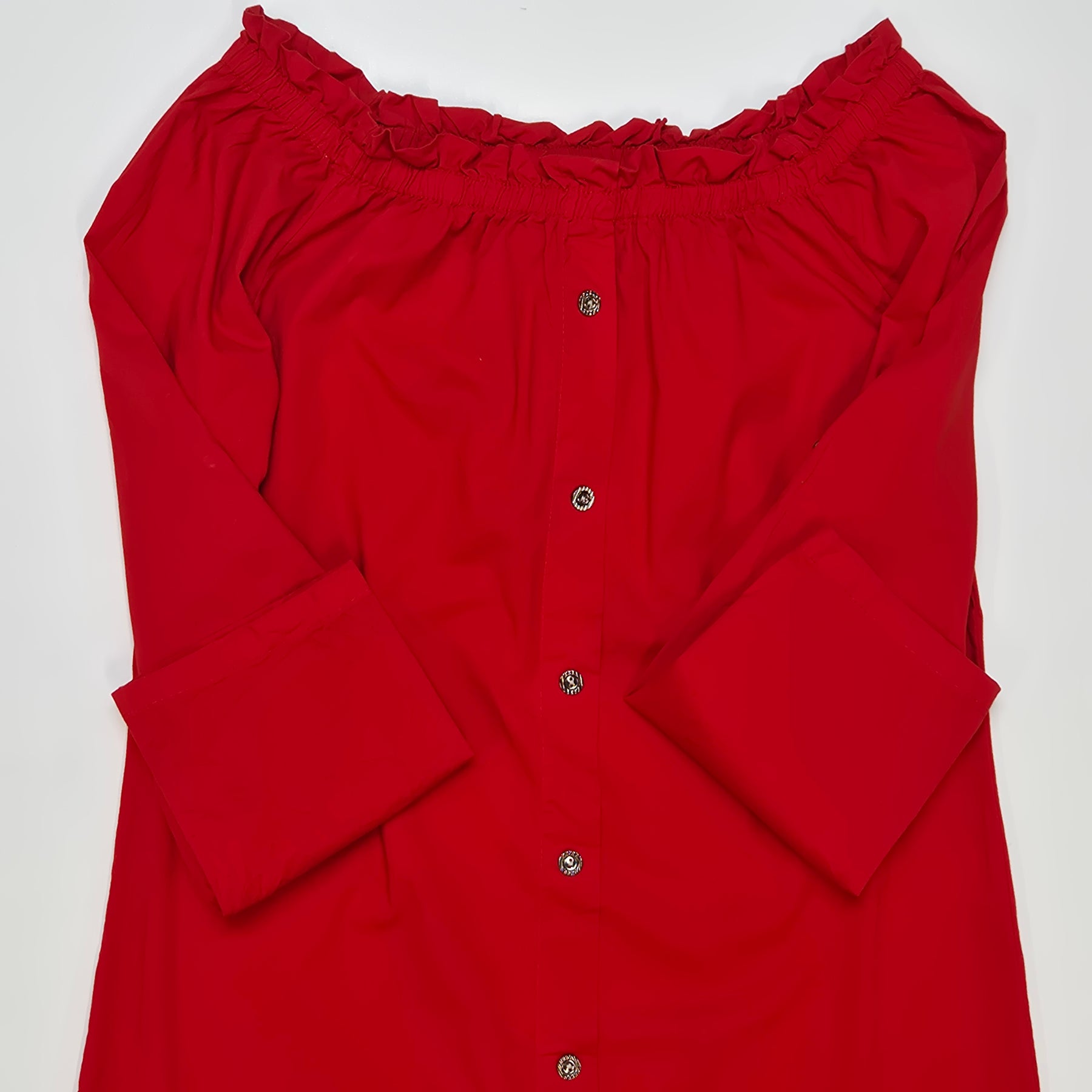 En charmerande och tidlös röd blus som sätter en elegant prägel på din garderob.Produktbeskrivning