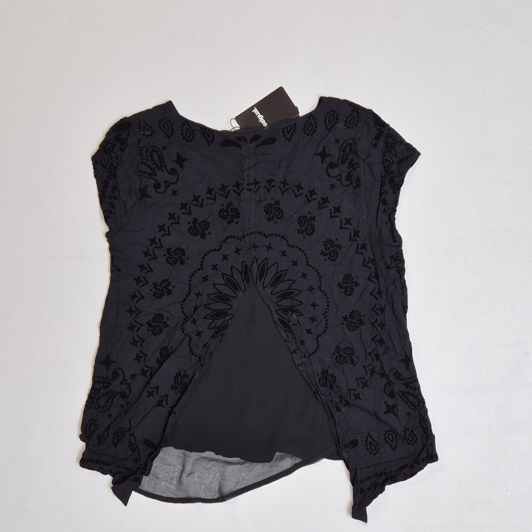 Unik svart topp från Desigual med vackert sammetsmönster – perfekt när du vill lyfta en enkel outfit med något speciellt.