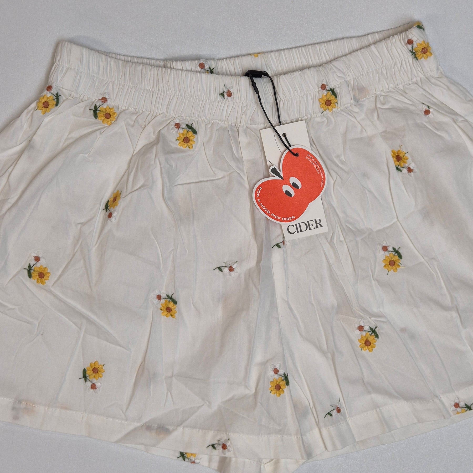 Lätta och luftiga shorts från Cider i vit färg med ett diskret blommönster. Modellen har resår i midjan för bekväm passform och är perfekt för varma dagar. Plagget är nytt med originaletikett kvar.
