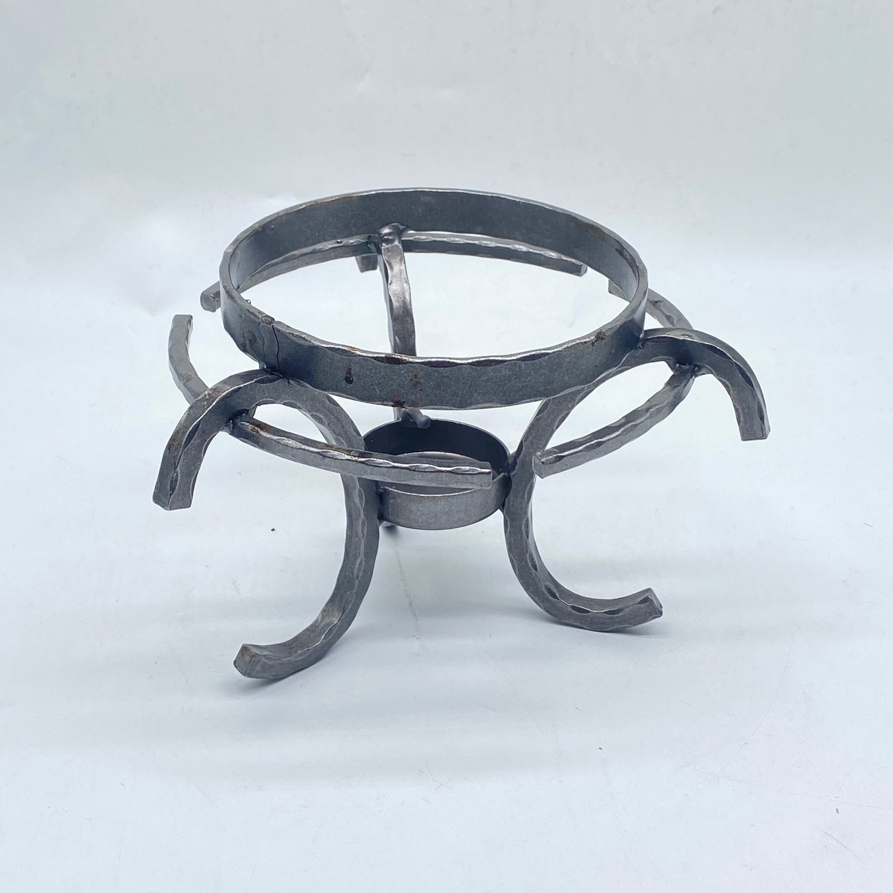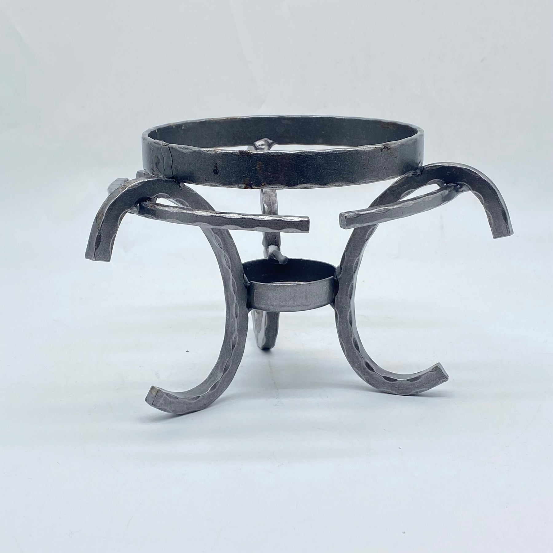 Denna handgjorda ljusstake i smidesjärn är inte bara en ljuskälla, utan också ett underbart dekorationsobjekt. Med sitt robusta material och tidlösa design lämpar den sig väl för både moderna och traditionella miljöer. Ljusstaken är begagnad men har bibehållit sin karaktäristiska charm och är i mycket gott skick.Produktspecifikationer