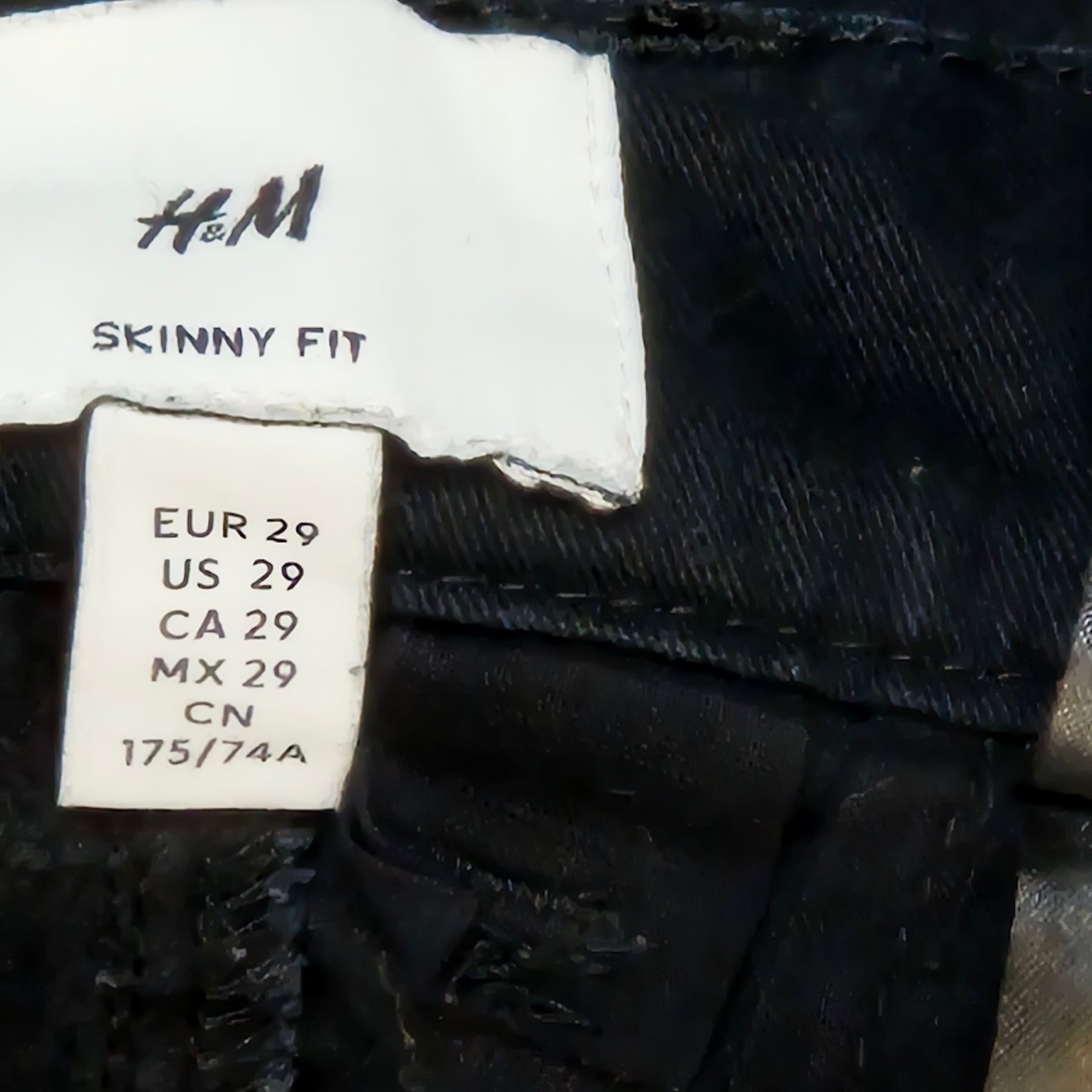 Dessa jeans är tillverkade av H&M, kända för både kvalitet och modern design. Med sin skinny fit passar de utmärkt till såväl vardags som till mer uppklädda tillfällen. Optimala för den som uppskattar att hålla stilen utan att kompromissa med komforten. Plagget är begagnat men fortfarande i mycket gott skick, vilket gör det till ett miljövänligt och prisvärt alternativ.Produktspecifikationer