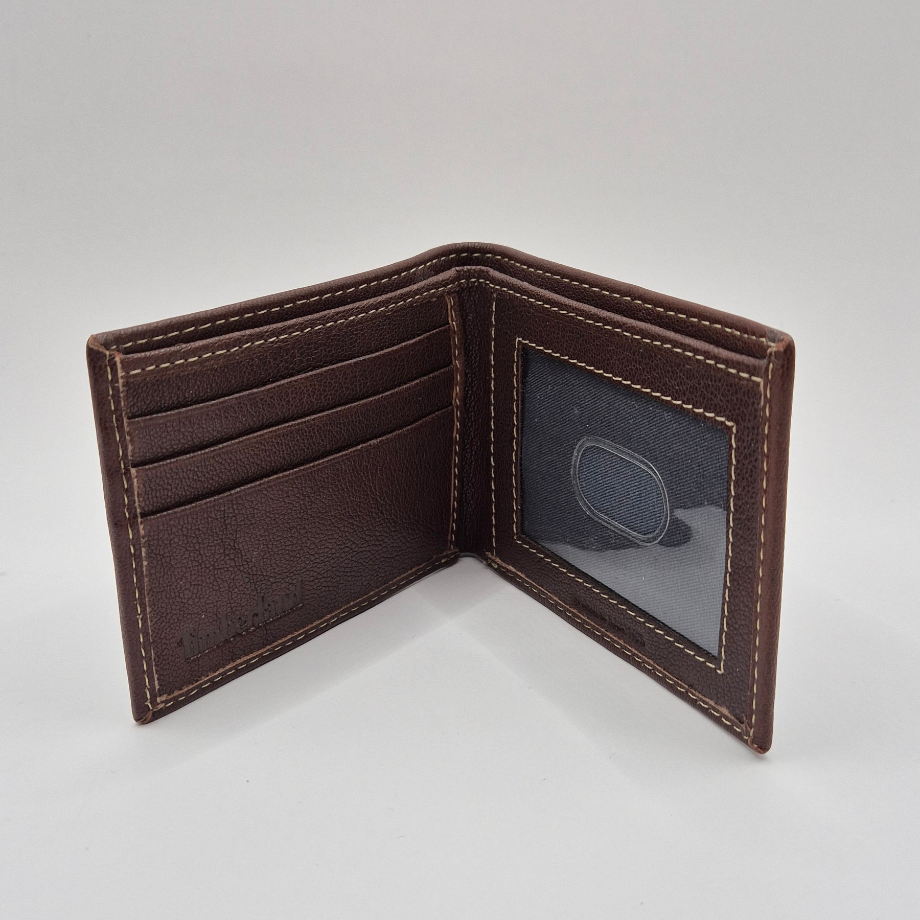 Denna stilrena plånbok är tillverkad av högkvalitativt läder med Timberlands välkända trädklöver-logotyp diskret präglad på framsidan. Med flera fack för kort och en genomskinlig ficka för ID eller körkort kombinerar den funktionalitet med sofistikerad design. Den är begagnad men fortfarande i utmärkt skick, vilket gör den till ett utmärkt köp för den stilmedvetne.Produktspecifikationer