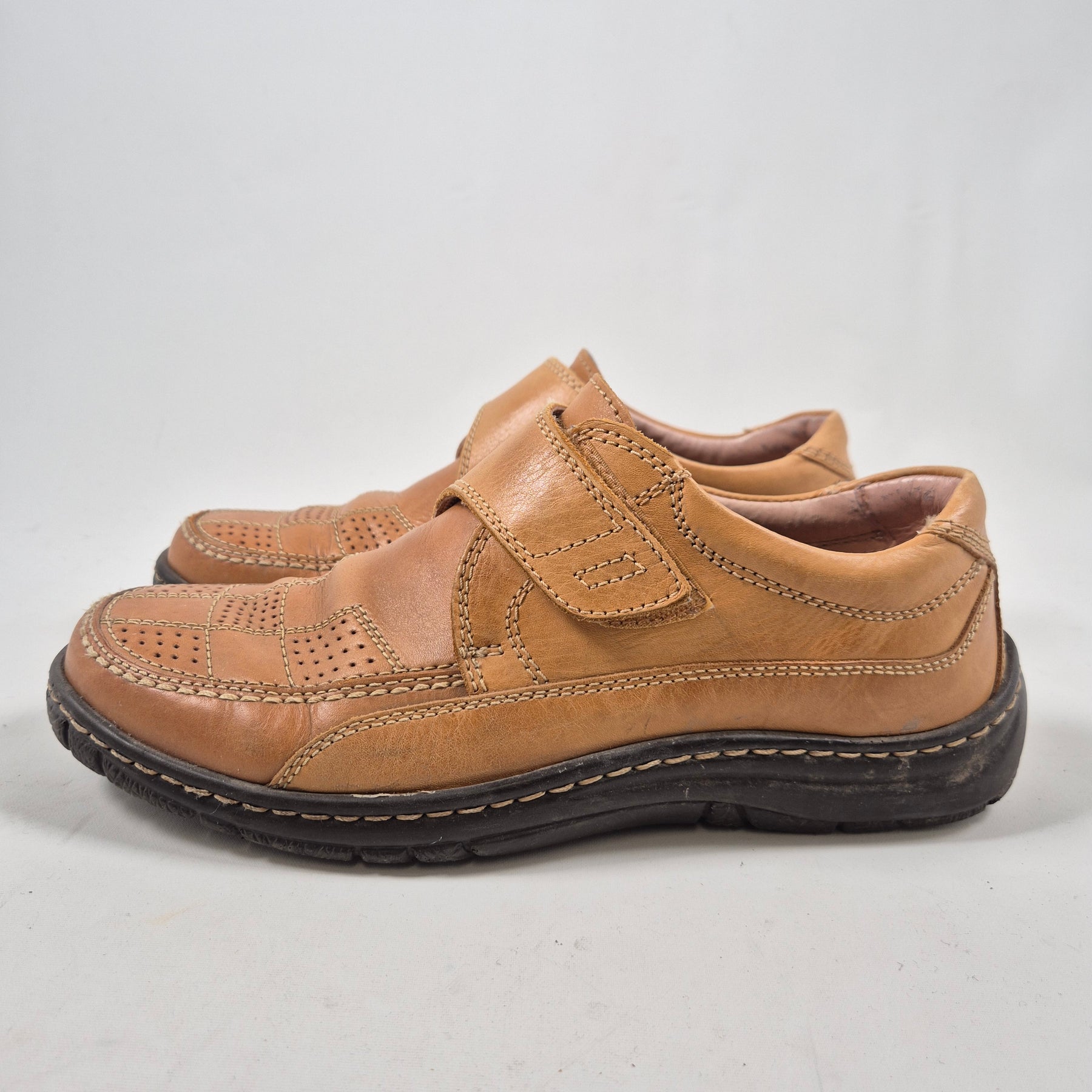 Dessa handgjorda herrskor utmärker sig med en tidlös design och hög kvalitet. Skorna är gjord i läder med detaljerad sömn och perforeringar som inte bara tillför stil utan även komfort. Perfekta för den som uppskattar hantverksmässig kvalitet och stil. Skorna är begagnade men i mycket gott skick och redo att bäras på nya äventyr.Produktspecifikationer
