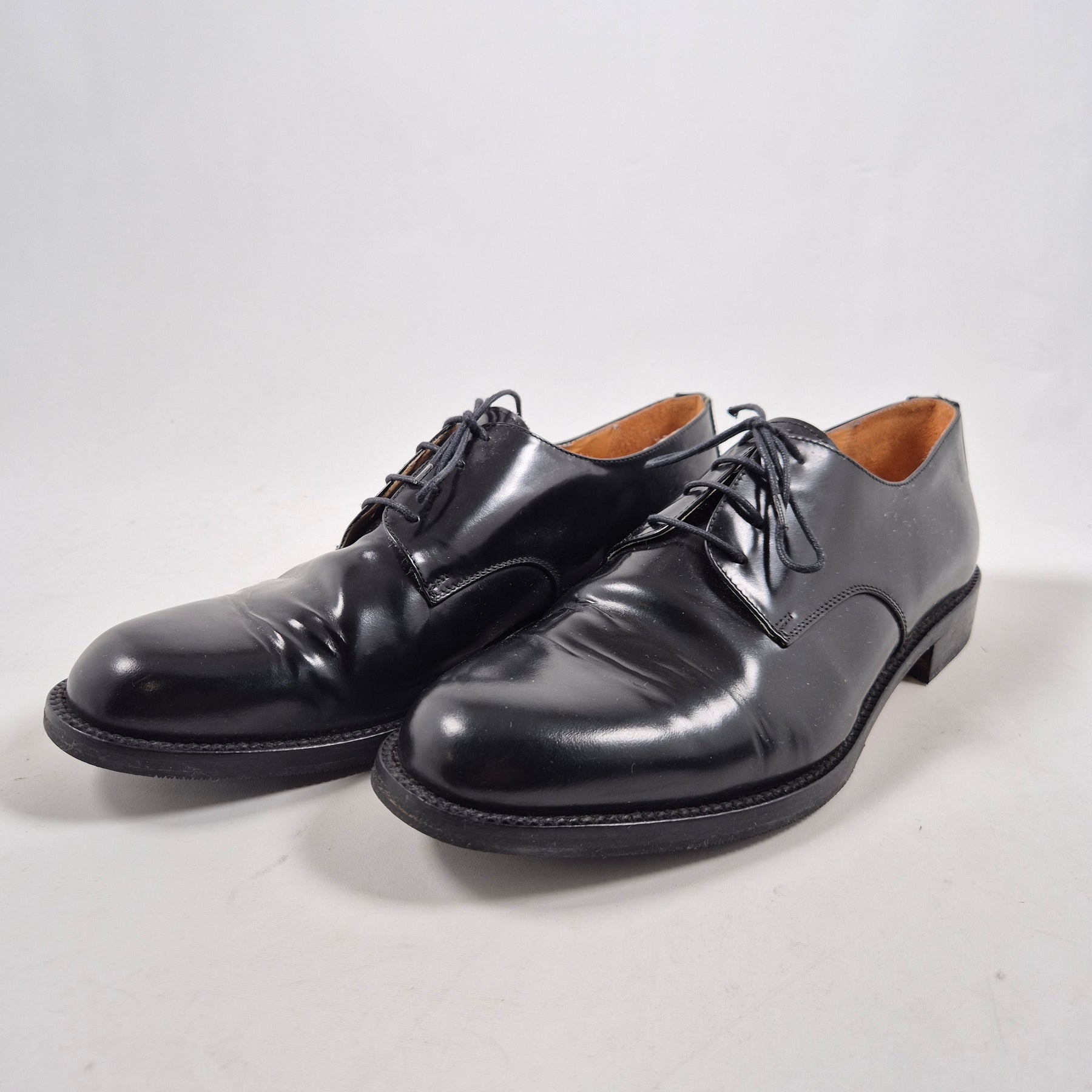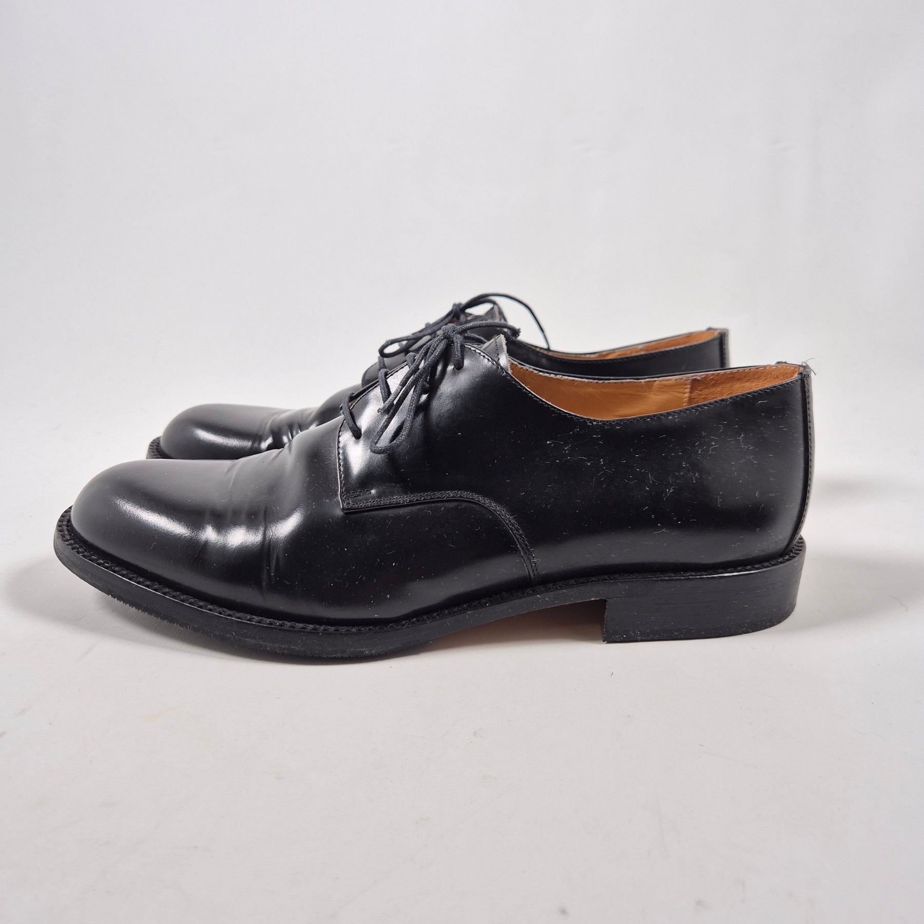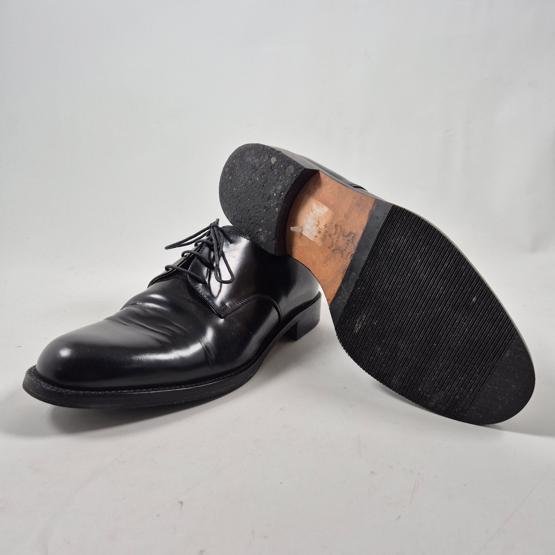 Dessa eleganta läderskor är designade för att komplettera din kostym med en touch av sofistikering. Tillverkade i Italien under märket Vero Cuoio, de är kända för sin höga kvalitet och hållbarhet. Skorna är ett måste för varje modeintresserad och passa utmärkt för både arbete och sociala evenemang. De är begagnade men väl underhållna och i mycket gott skick.