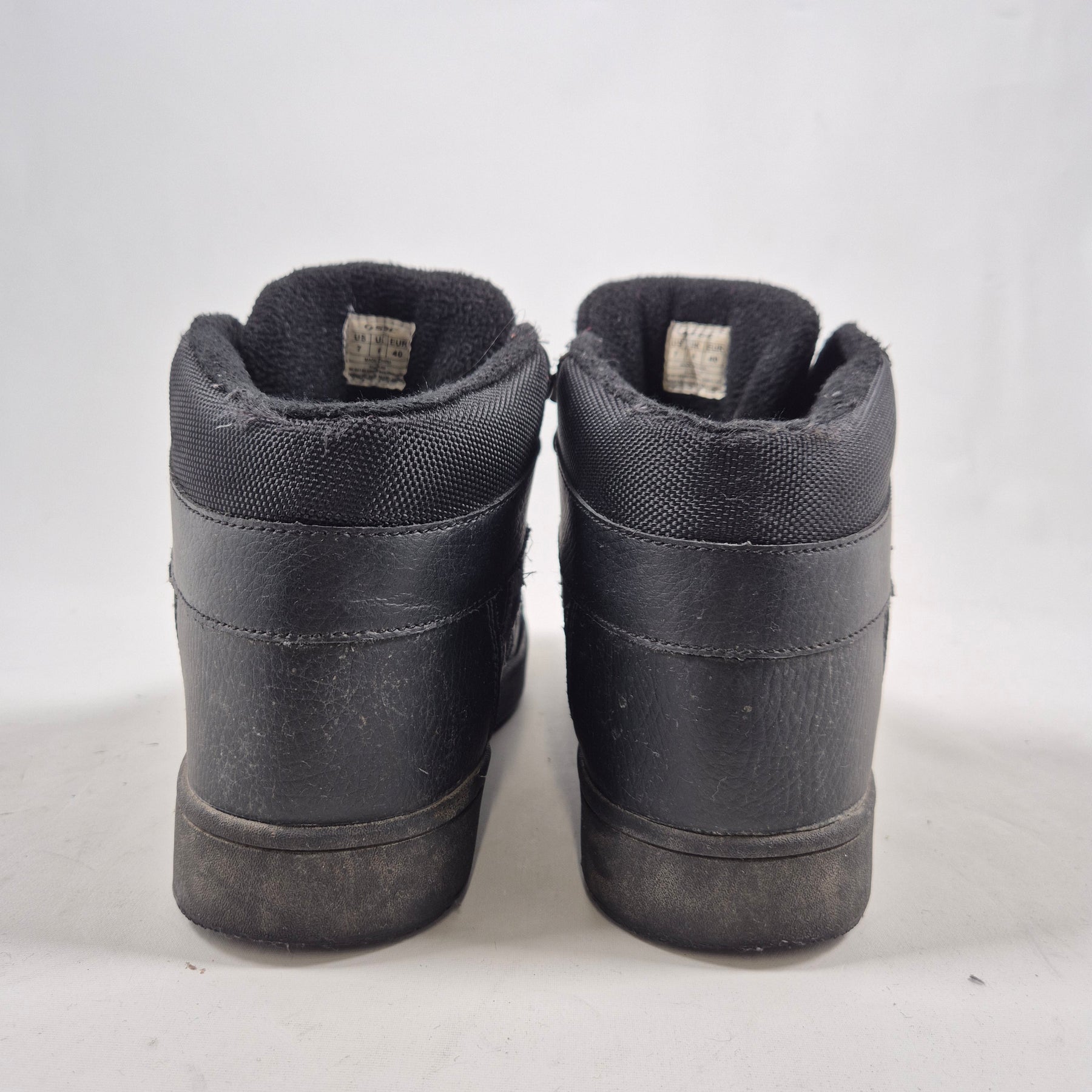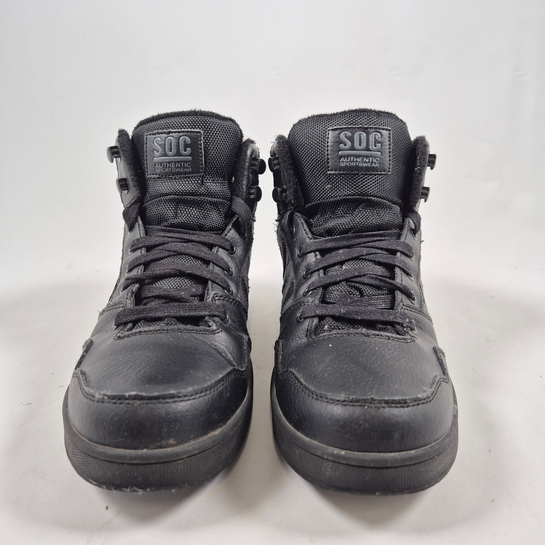 Dessa höga sneakers är designade för att kombinera stil med komfort. Tillverkade av SOC, de har en robust konstruktion och är tillverkade i ett hållbart svart material som står emot dagligt slitage. Skorna är idealiska för både vardagsanvändning och till mer aktiva tillfällen tack vare deras mångsidiga design. Produkten är begagnad men i mycket gott skick, vilket gör dem till ett utmärkt köp för den prismedvetne modemedvetna konsumenten.Produktspecifikationer
