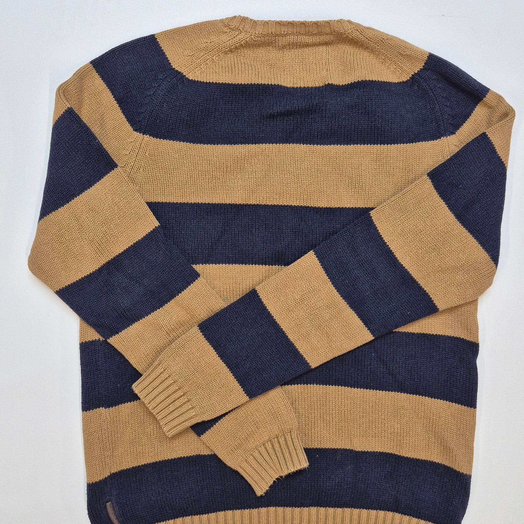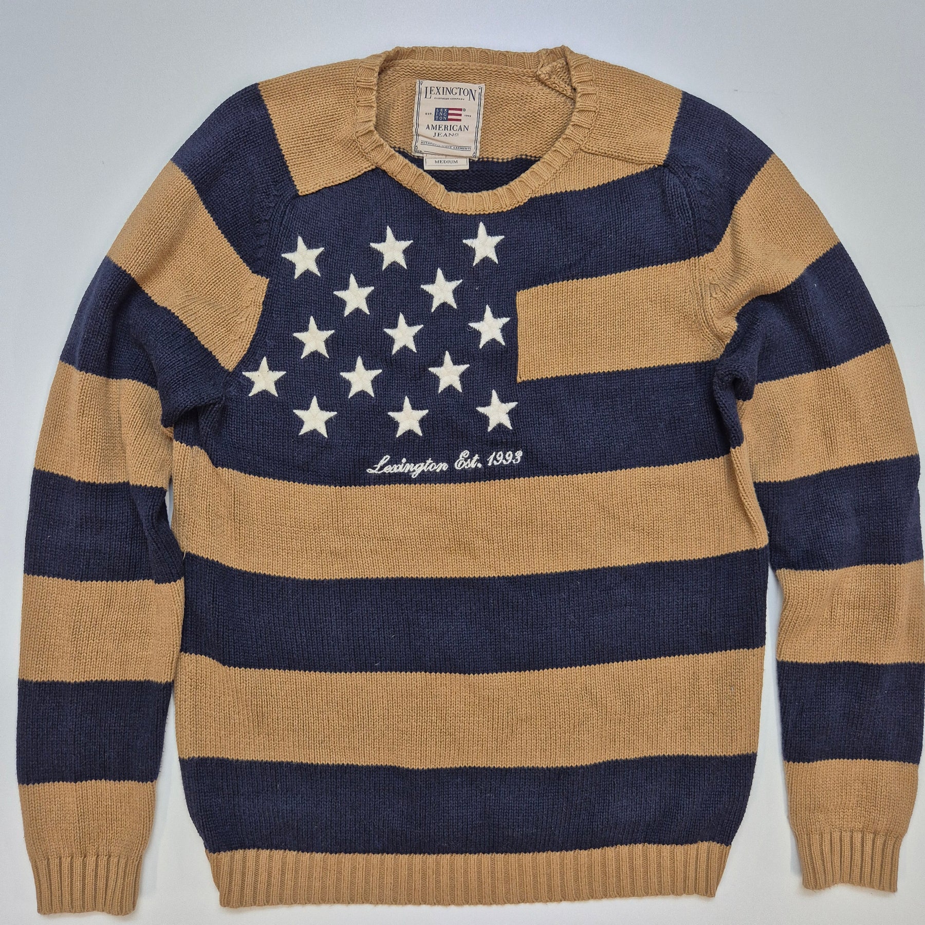 Denna tröja från Lexington American Jeans är ett utsökt exempel på retroamerikansk mode. Designad med en inspirerande flagga och snygga, kontrasterande ränder. Tröjan kombinerar komfort med en distinkt estetik som passar till både casual och uppklädda tillfällen. Lagom tjock i tyget vilket gör den idealisk för svensk vårtid och höst. Skicket är begagnat men välbevarat.