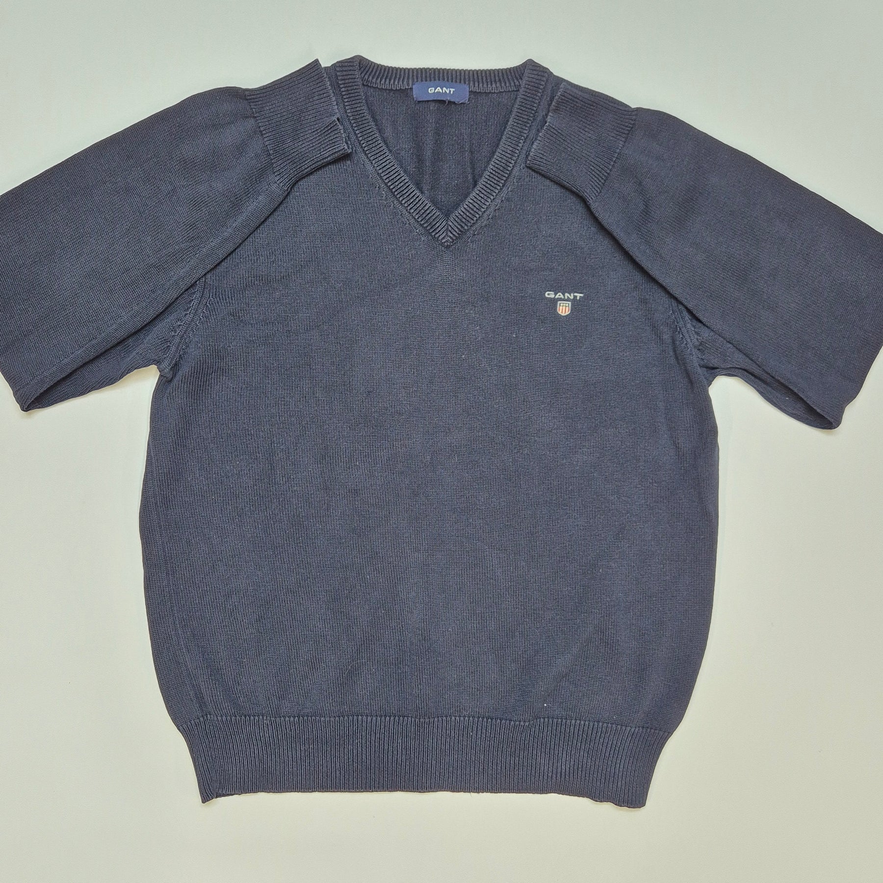 Denna snygga GANT-tröja är tillverkad för att bjuda på både stil och komfort. Tröjan kommer i en grå färg med V-ringad design, vilket gör den perfekt för både formella och informella tillfällen. Varumärket är synonymt med kvalitet och hållbarhet, och produkten är begagnad men i mycket gott skick, med minimala tecken på tidigare användning.Produktspecifikationer