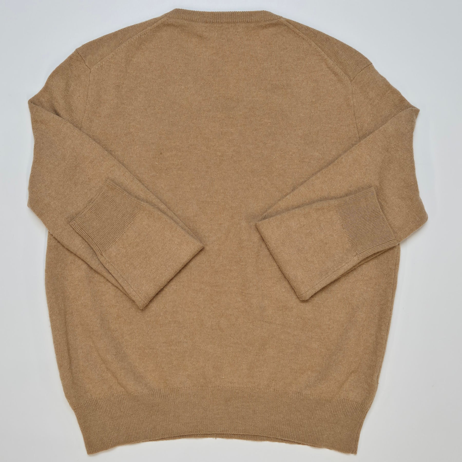 Denna klassiska V-ringade tröja är tillverkad av en mjuk och behaglig ullblandning. Med det välkända Polo Ralph Lauren-märket diskret broderat på bröstet, kombinerar denna tröja stil med komfort. Den är idealisk för att skapa en polerad vardagslook eller för smartare tillställningar. Tröjan är begagnad men i mycket gott skick, vilket gör den till ett utmärkt köp för den modemedvetne.Produktspecifikationer