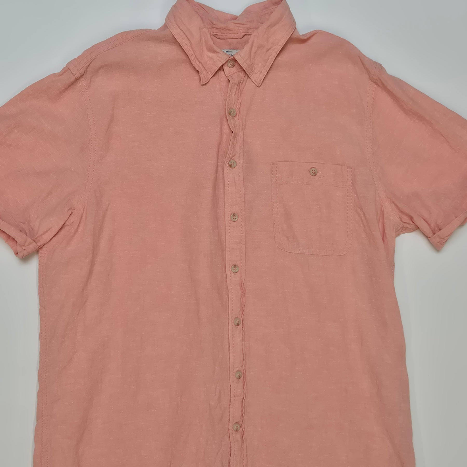 Denna stilfulla kortärmade rosa skjorta kombinerar komfort och klass med sin mjuka textur och avslappnade passform. Skjortan är tillverkad av ett lätt och luftigt material, perfekt för varmare dagar eller som ett stilsäkert lagerval under kyligare månader. Den är använd men fortfarande i ett mycket gott skick, vilket gör den till ett smart och hållbart köp.3. Produktspecifikationer