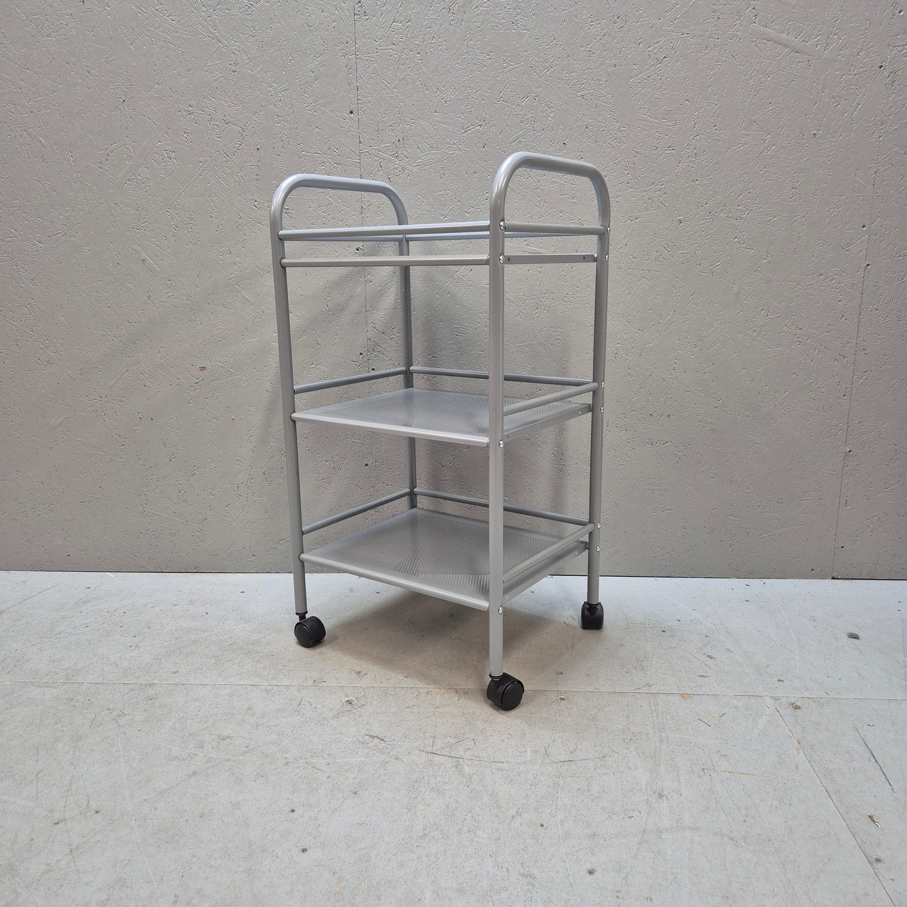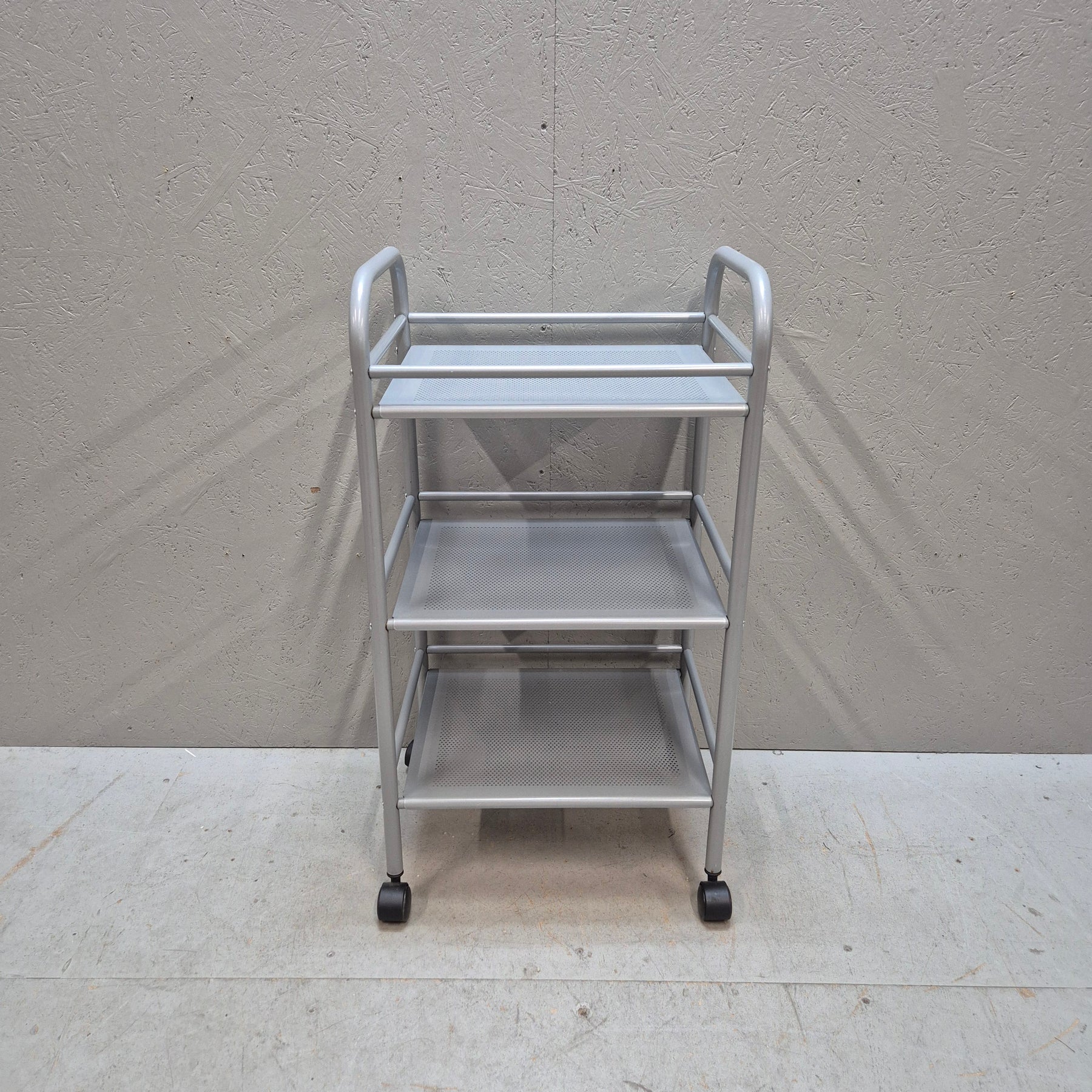 Denna IKEA rullvagn, modell RÅSKOG, erbjuder en praktisk lösning för förvaring och transport av diverse föremål. Vagnen har tre robusta hyllplan, vilket gör den perfekt för köksförvaring, kontorsmaterial eller som en extra avlastningsyta. Den är producerad i metall med en slät lättskött yta, och dess kompakta design gör att den passar väl även i mindre rum. I mycket gott skick och redo för användning i sitt nya hem!
