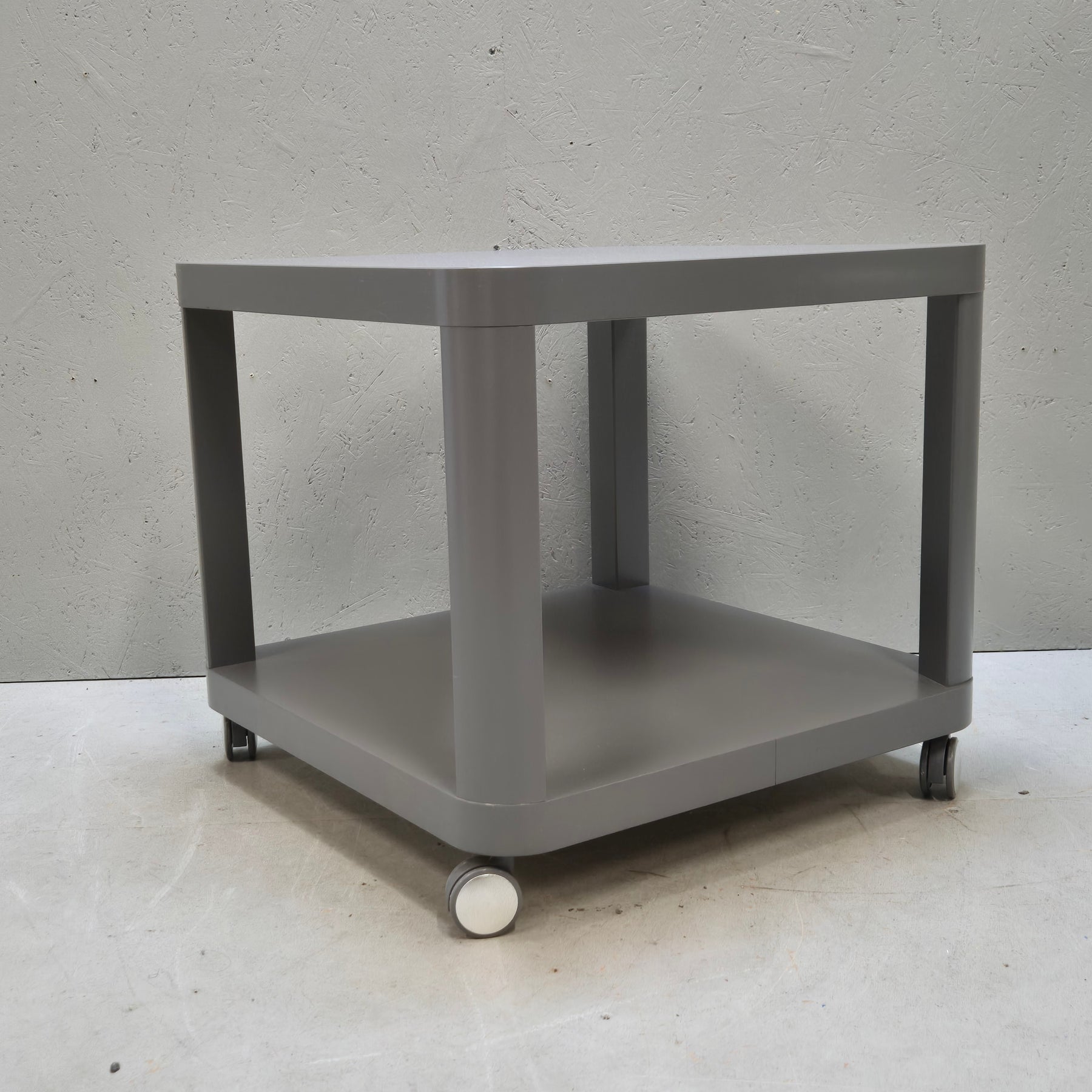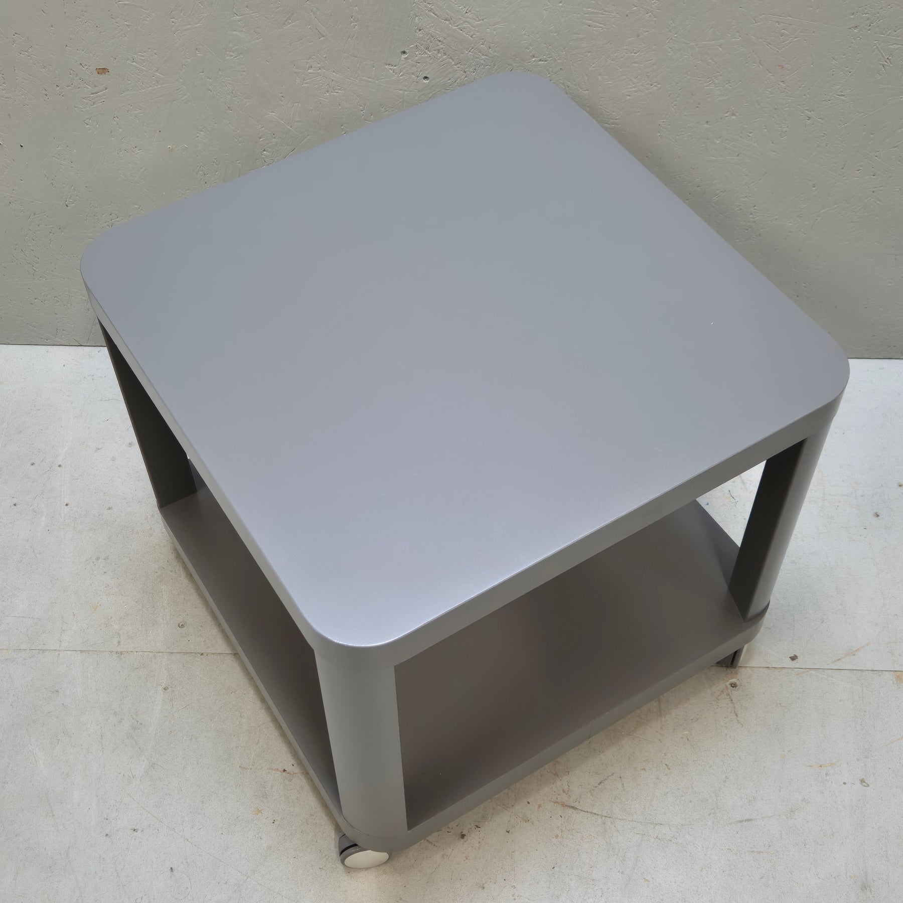 Denna flexibla rullvagn passar perfekt i alla moderna hem eller kontor, erbjudande en elegant och funktionell lösning för förvaring eller som flyttbar avlastningsyta. Rullvagnen är utformad med en robust grå konstruktion och två hyllplan, vilket gör den idealisk för att organisera allt från köksutensilier till kontorsmaterial. Tack vare hjulen är den enkel att flytta runt efter behov. Produkten är begagnad men i mycket gott skick, visar minimala tecken på användning.