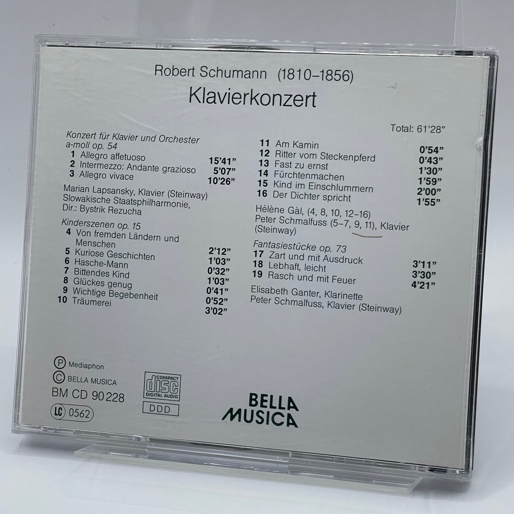 Denna CD innehåller en exklusiv inspelning av Robert Schumanns "Klavierkonzert" samt ytterligare stycken från hans "Kinderszenen" och "Fantasiestücke". Inspelningen bjuder på enastående framföranden av välrenommerade pianister såsom Marian Lapsansky och Peter Schmalfuss, ackompanjerade av Slovenská Filharmónia. Den är ett måste för alla klassisk musikälskare och en juvel för musiksamlingar. CD:n är begagnad men i utmärkt skick, redo att berika din musikupplevelse.