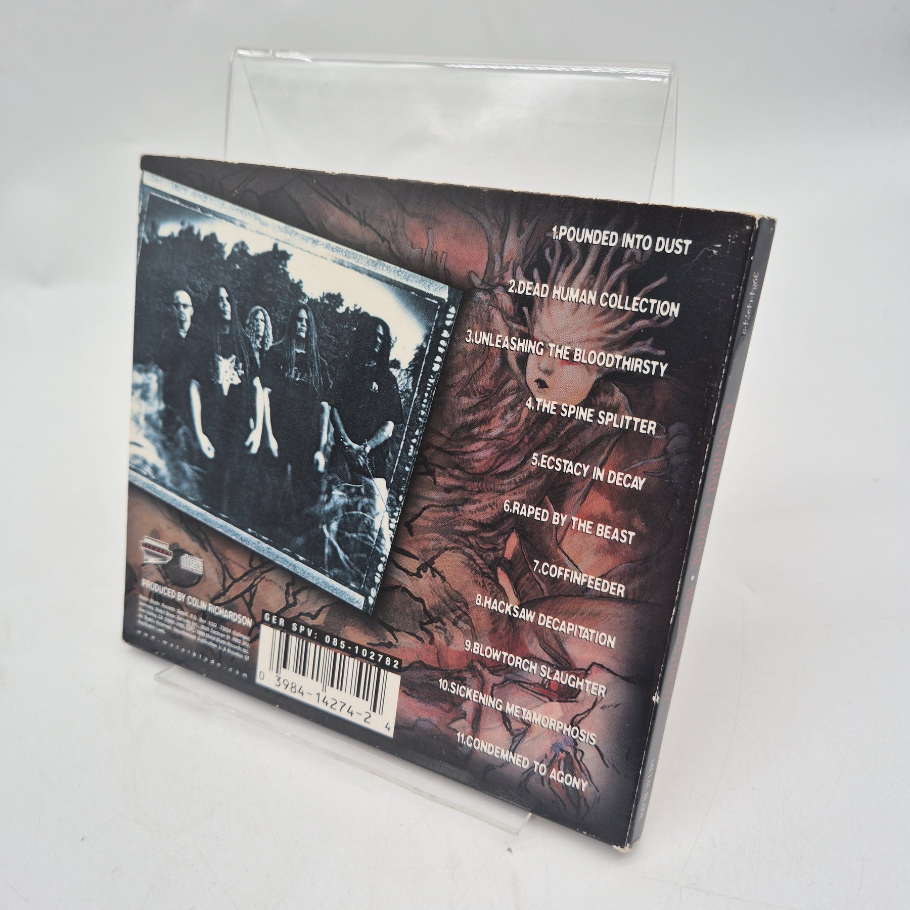 Detta är ett begagnat CD-album av Cannibal Corpse med originalplastfodral samt tryckt häfte med omslagskonst och låttexter. Skivan är avsedd för standard CD-spelare och bjuder på tung och kompromisslös death metal, idealisk för både inbitna fans och nyfikna samlare. Fodral och skiva har mindre spår av användning men är i gott skick och fullt fungerande.