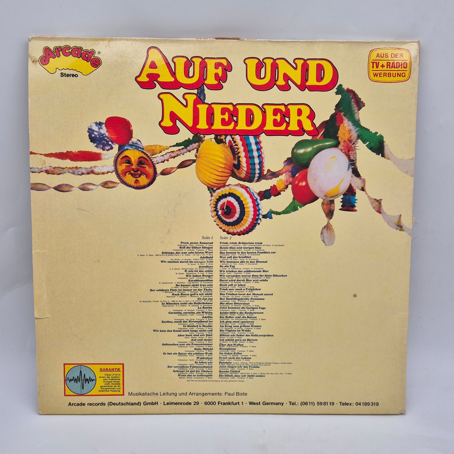En perfekt retrofynd för musikälskare, "Auf und Nieder" - ett vinylalbum med de 60 vackraste drickssångerna.Produktbeskrivning