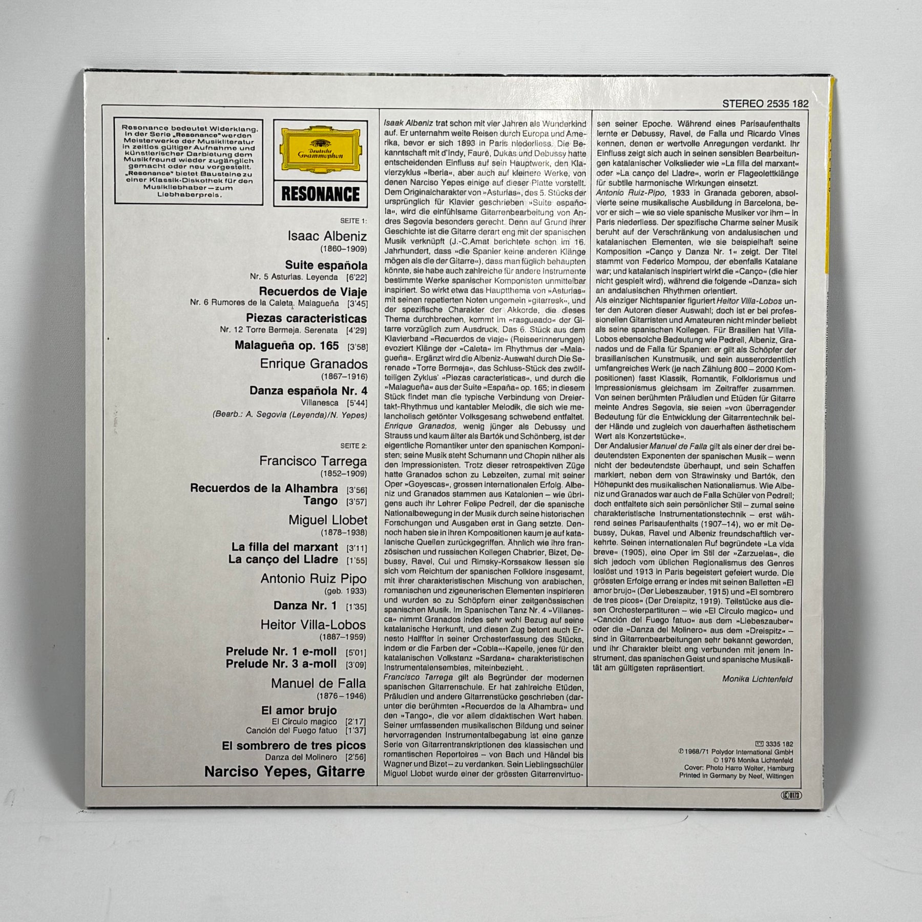 Upplev den ljuva känslan av klassisk musik med detta charmiga vinylalbum "Spanische Gitarren-Musik" av Narciso Yepes.