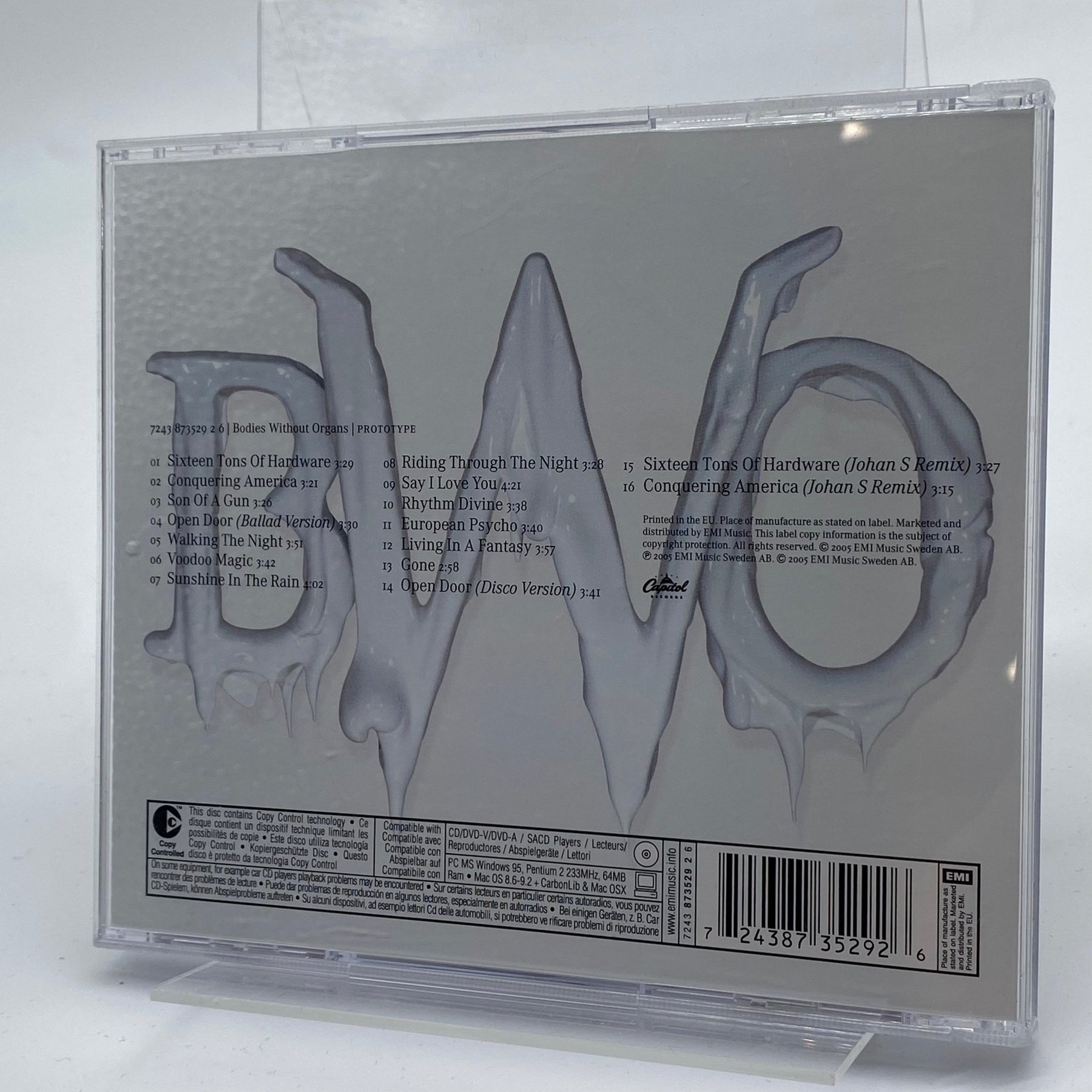Använd CD med albumet "Prototype" av den svenska popgruppen Bodies Without Organs. Perfekt för samlare eller fans av tidigt 2000-tals popmusik. Skivan är i gott skick med mindre bruksspår.