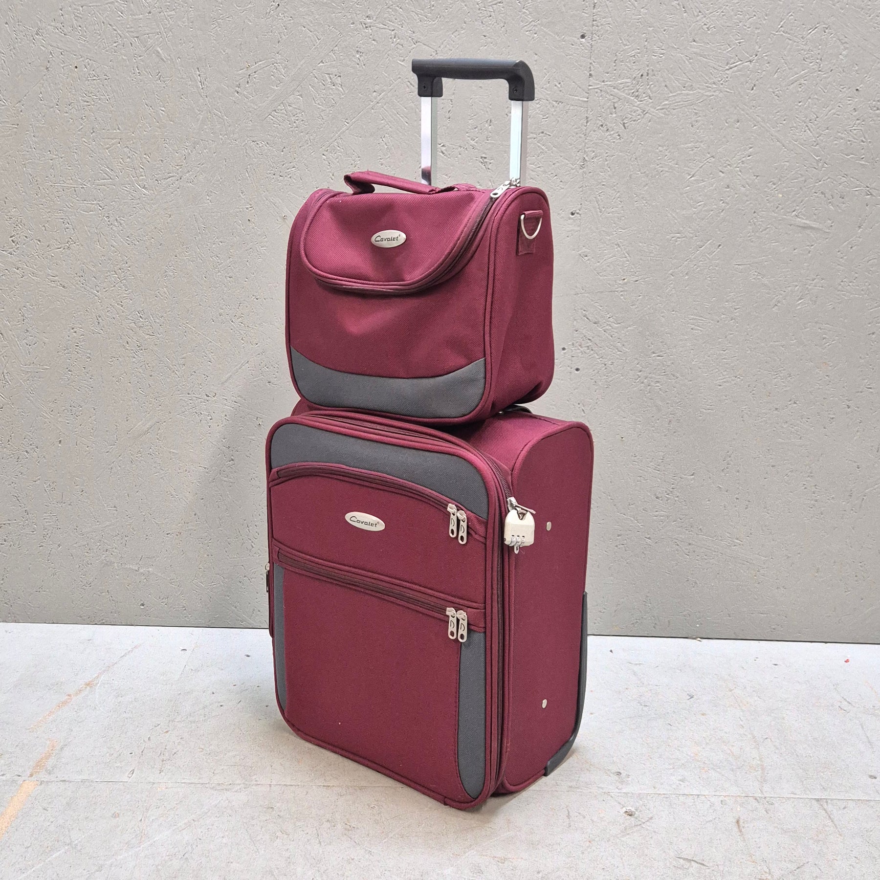 Denna snygga Cavalière resväska erbjuder den perfekta kombinationen av funktionalitet och stil. Väskan är utformad för att hålla ordning på dina tillhörigheter under resans gång, med flera fack och robusta hjul för smidig förflyttning. Det djupa vinröda tyget ger en touch av elegans, medan dess kompakta storlek gör den idealisk för både kortare resor och längre äventyr. Skicket är begagnat men mycket gott.Produktspecifikationer