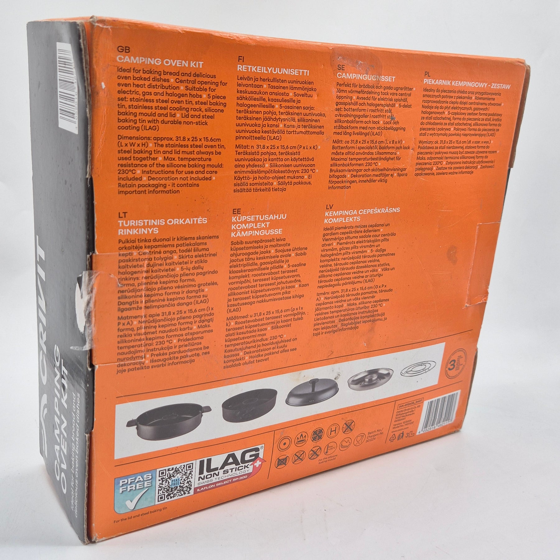 Denna Crivit Camping Oven Kit är idealisk för alla som älskar att laga mat utomhus, vare sig det är bakning eller gratänger. Produkten är designad för enkel användning och transport, tack vare sin kompakta storlek och praktiska hantering. Ugnen är knappt använd och kommer i originalförpackning, vilket gör den nästan som ny.Produktspecifikationer