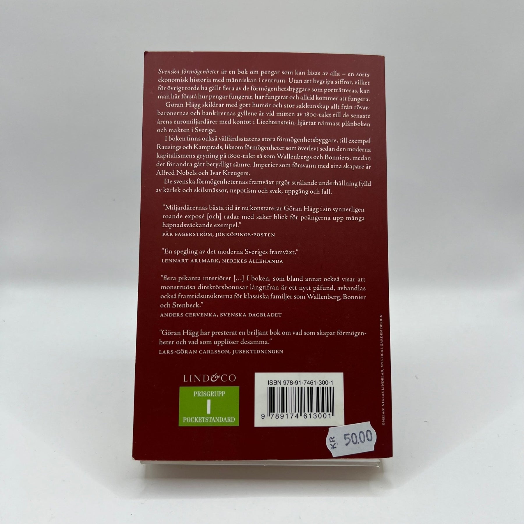 Boken "Svenska Förmögenheter" av Göran Hägg är en insiktsfull utforskning av ekonomisk historia i Sverige. Denna begagnade bok är i gott skick och passar för alla intresserade av svensk ekonomi och historiska perspektiv.
