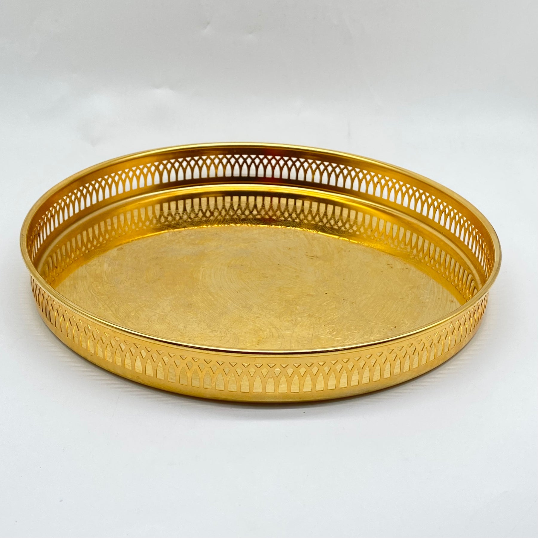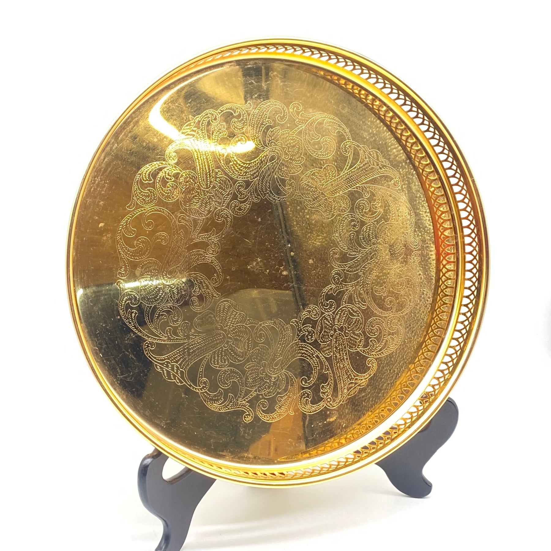 Upptäck denna eleganta och dekorativa mässingsbricka som tillför en touch av retro till din inredning.